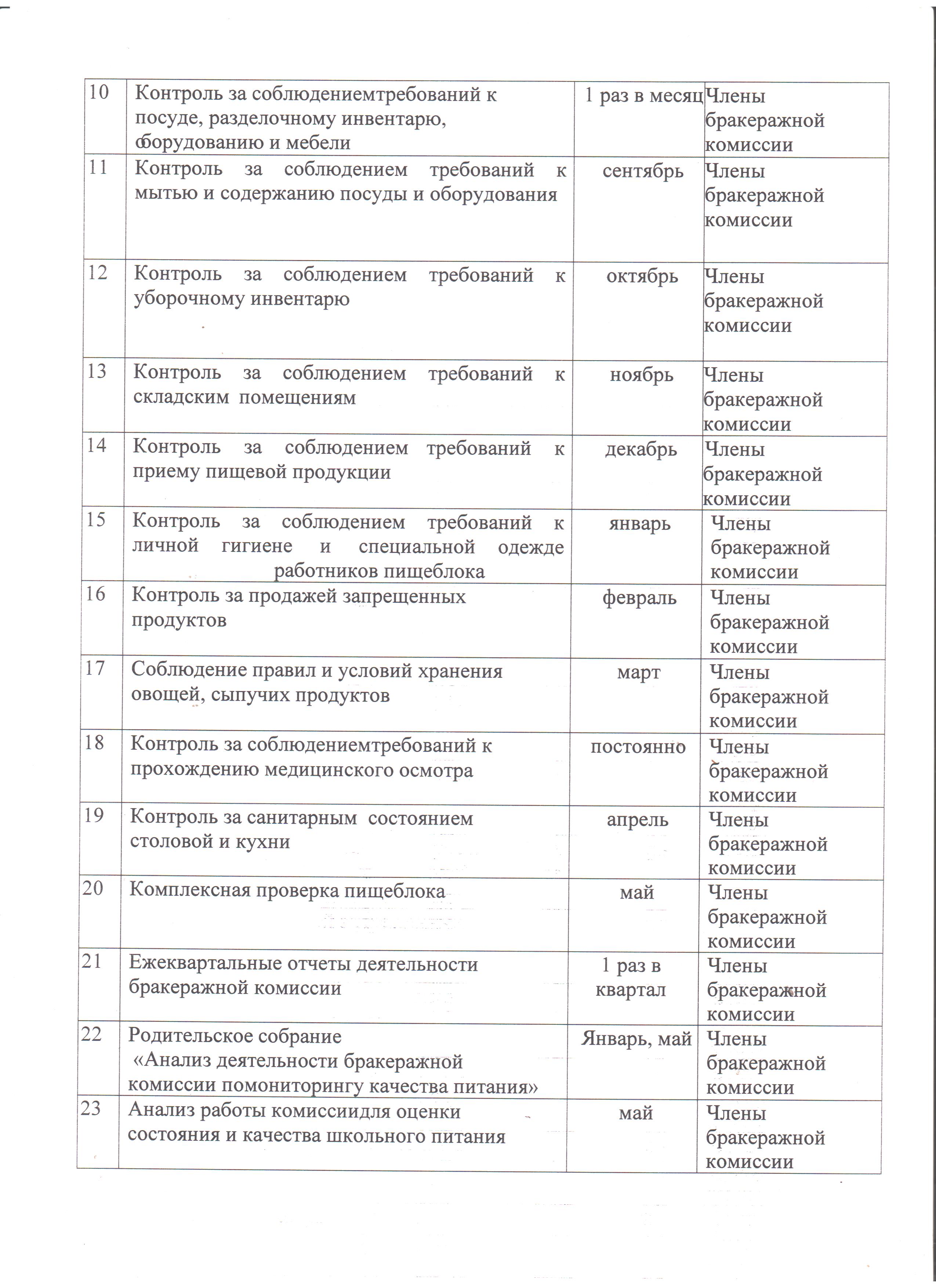план работы комиссии по мониторингу качества питанияплан работы |