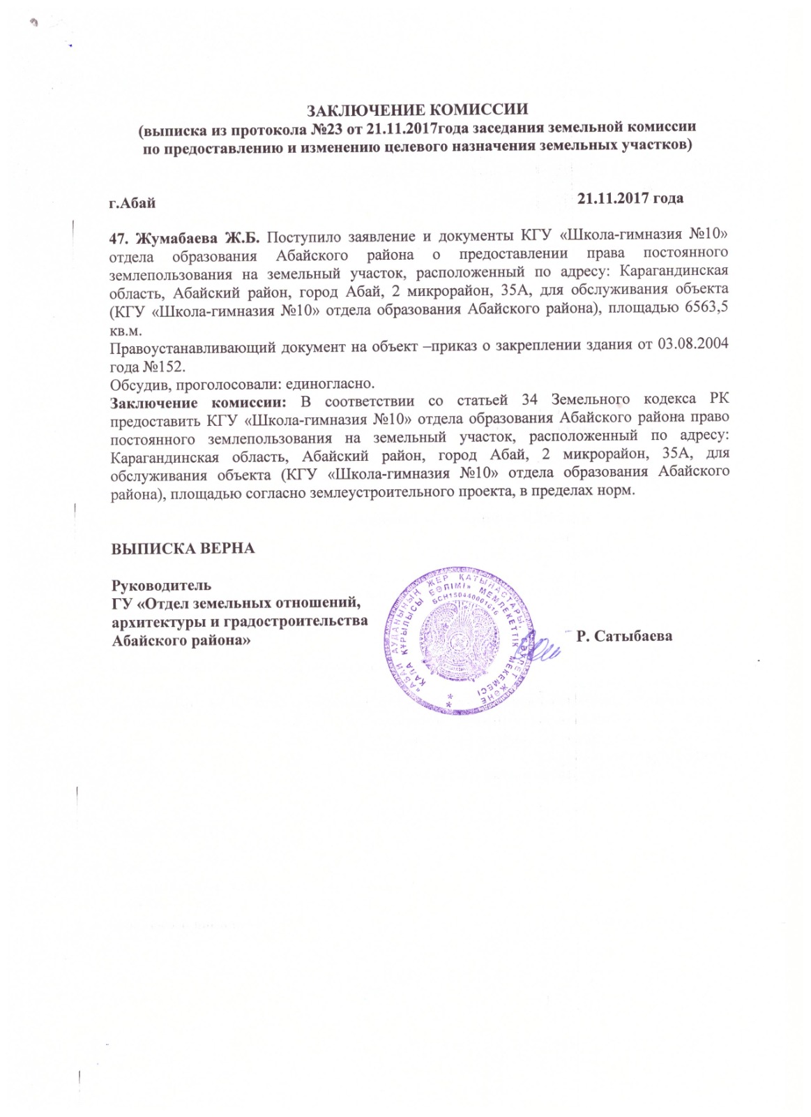 Заключение земельной комиссииЗаключение земельной комиссии |