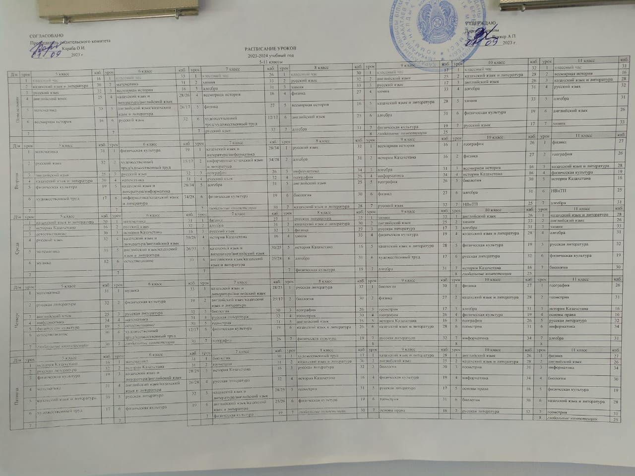 5-11 сыныптарға арналған сабақ кестесіУроки |