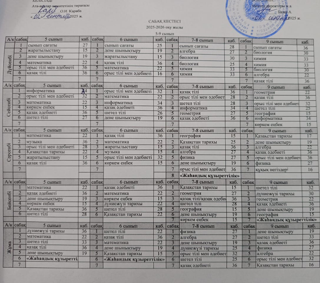 САБАҚ КЕСТЕСІ5-9 сыныптар |