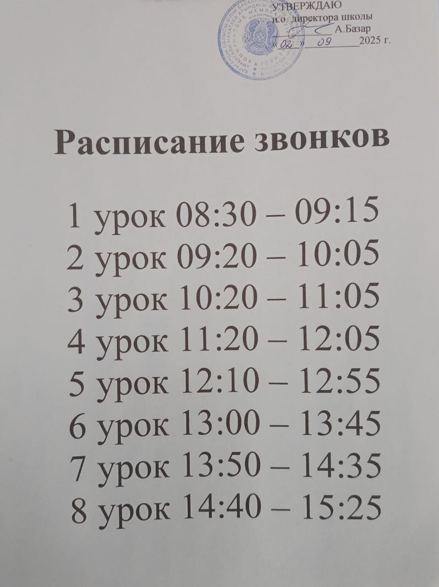 Расписание звонковВремя |