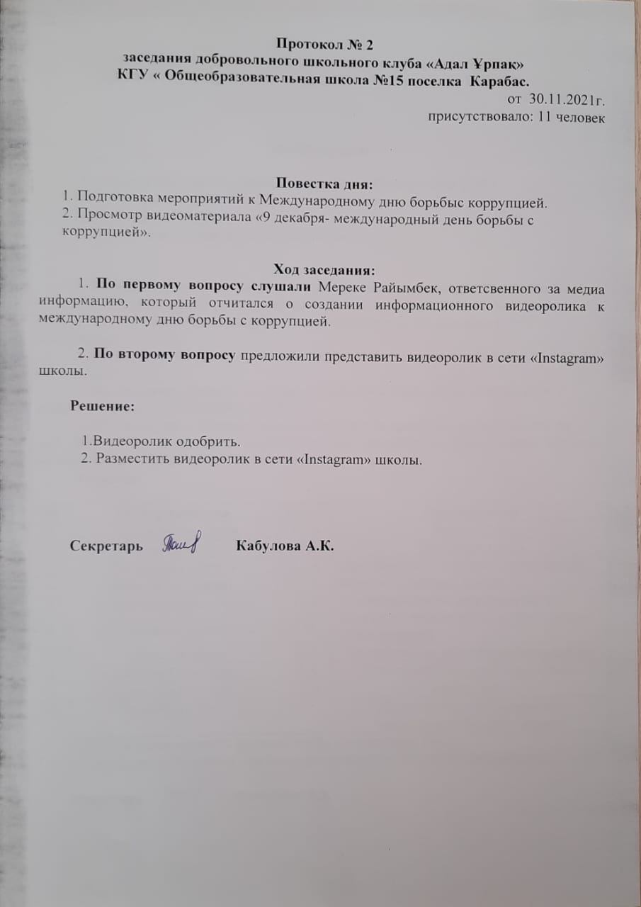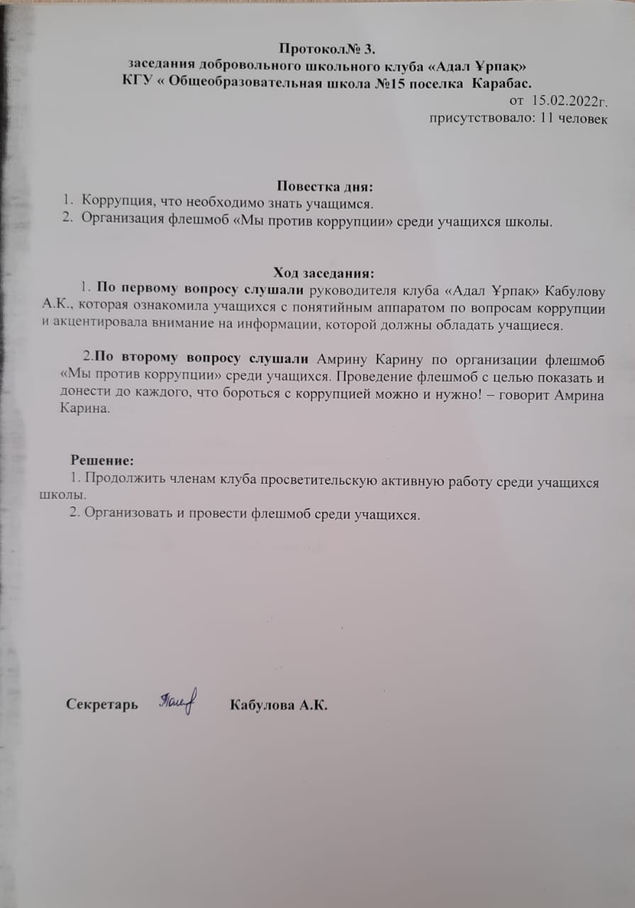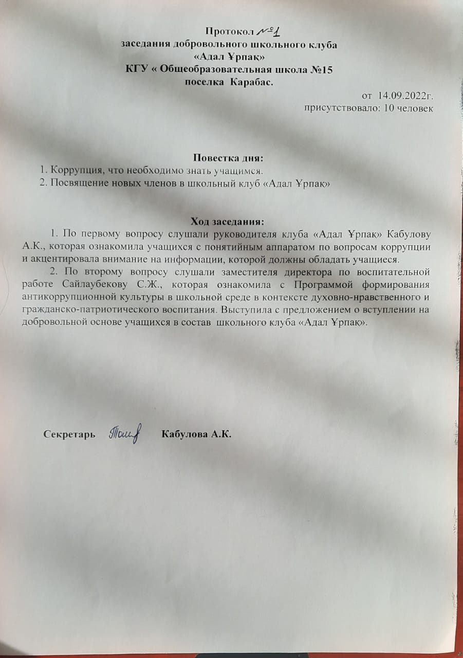 добровольный школьный клуб "Адал Ұрпақ" страница 1