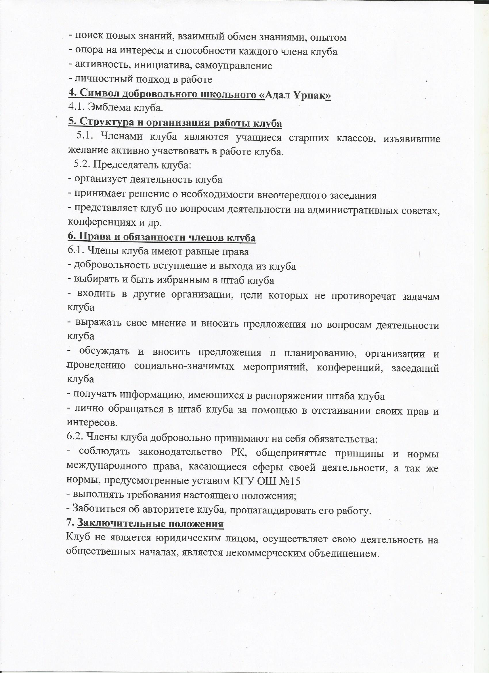 Положение о работе добровольного школьного клуба "Адал Ұрпақ" на 2023-2024 учебный год