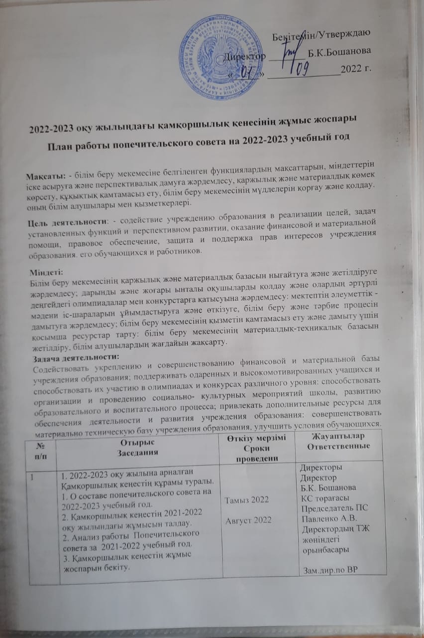 План работы попечительского советана 2022-2023 учебный год |