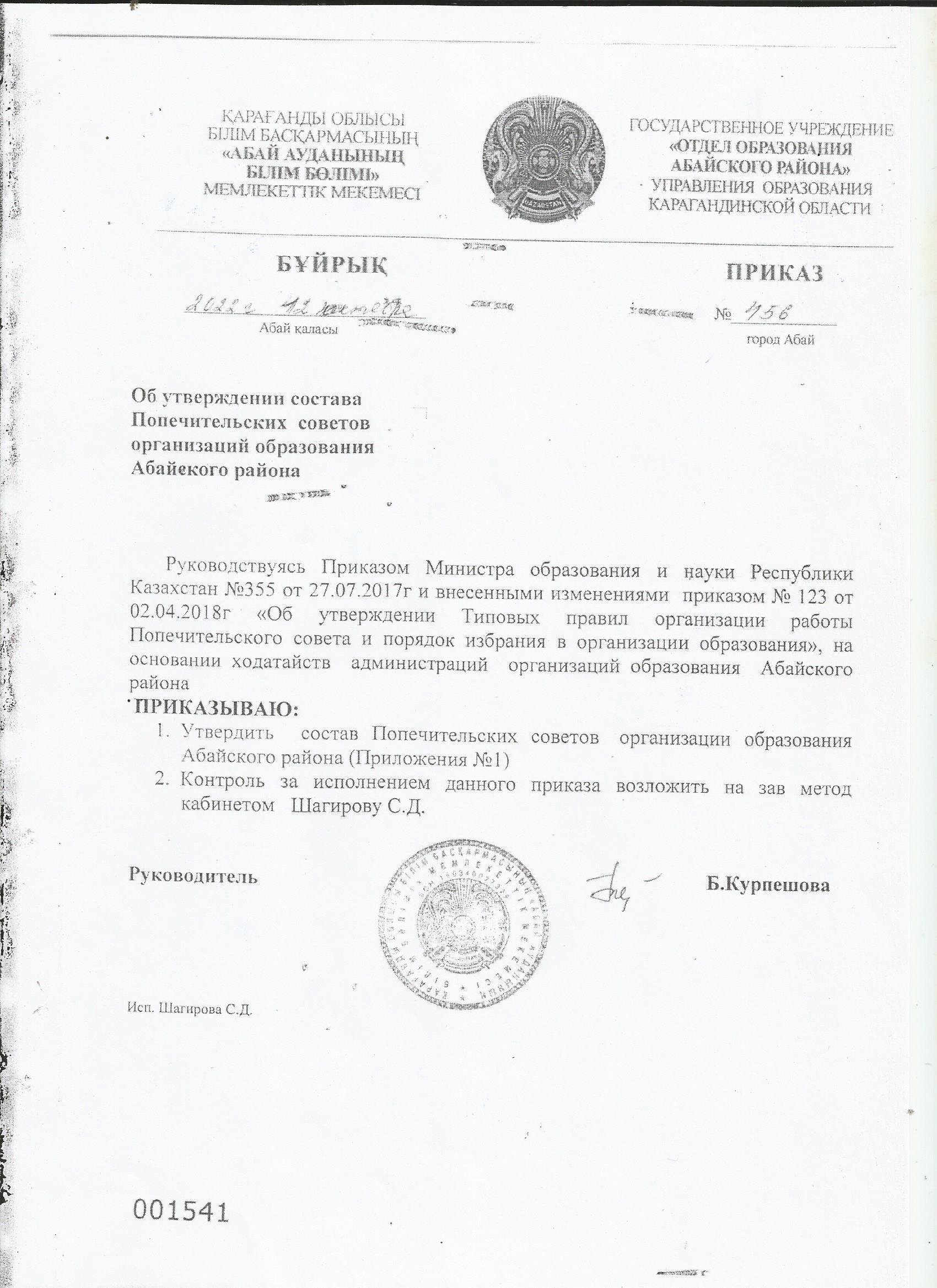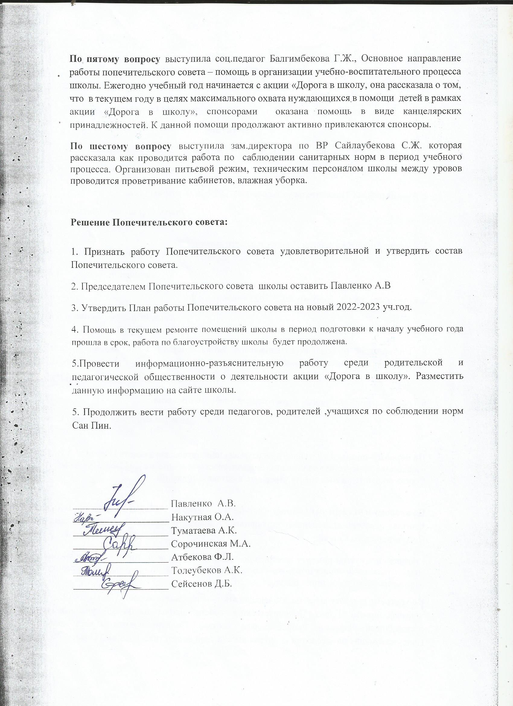 Работа Попечительского совета КГУ "Общеобразовательная школа № 15"