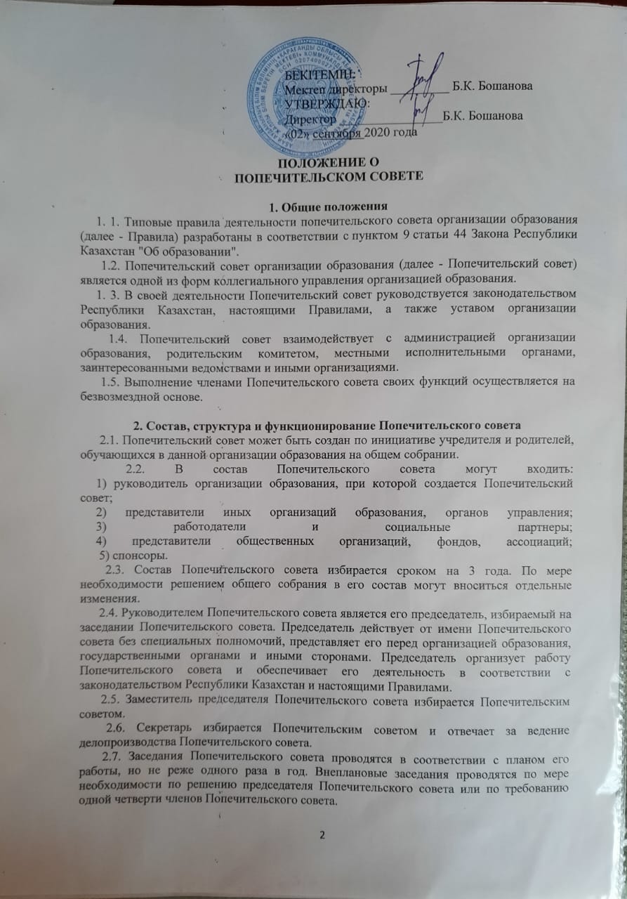 Типовые правилаорганизации работы Попечительского совета и порядок его избрания в организациях образования |