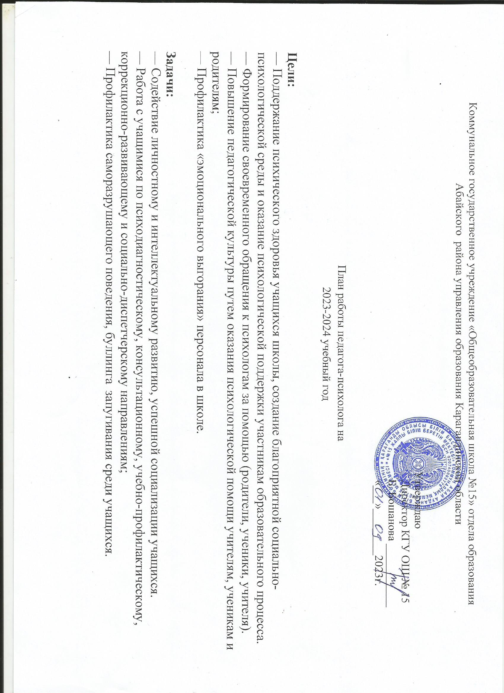 КГУ ОШ №15 на 2023-2024 учебный год
