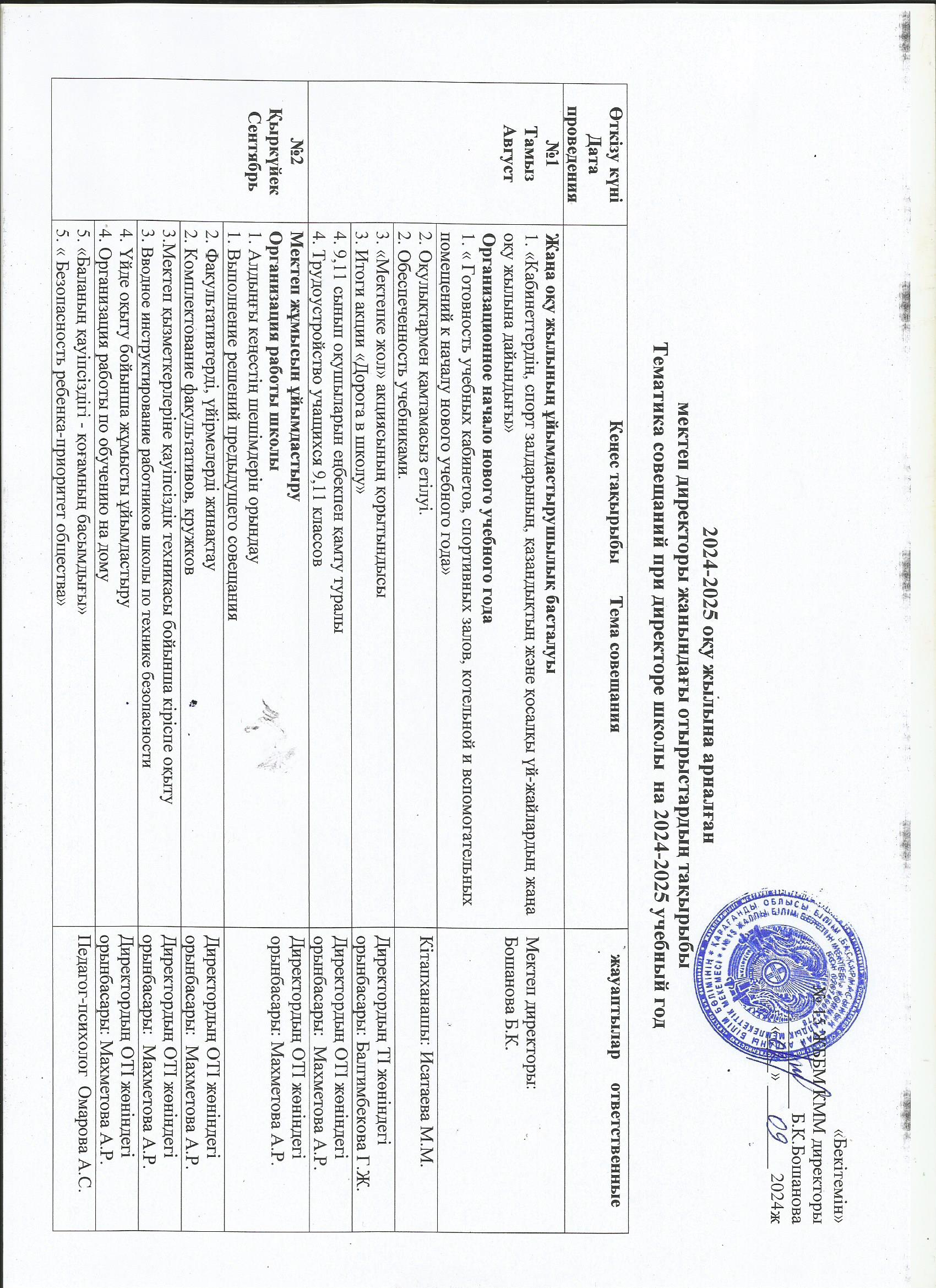 Тематика совещаний при директоре школы на 2024-2025 учебный годутвержденный |