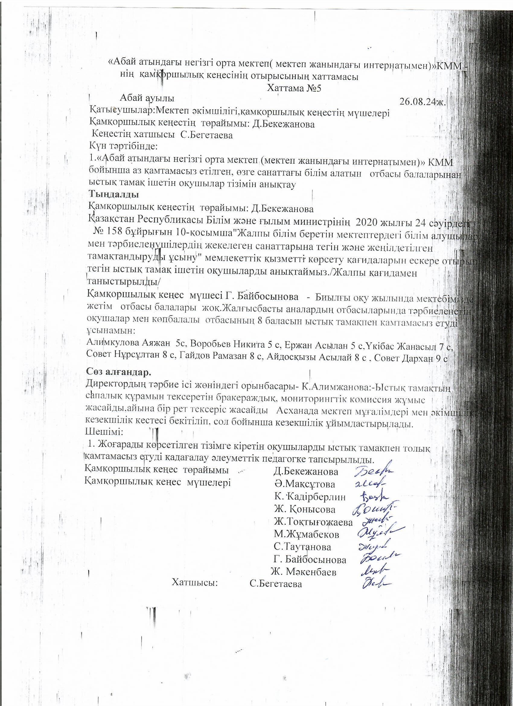 Қамқоршылық кеңестің хаттамасы 2024-2025 оқу жылыҚамқоршылық кеңестің хаттамасы 2024-2025 оқу жылы |