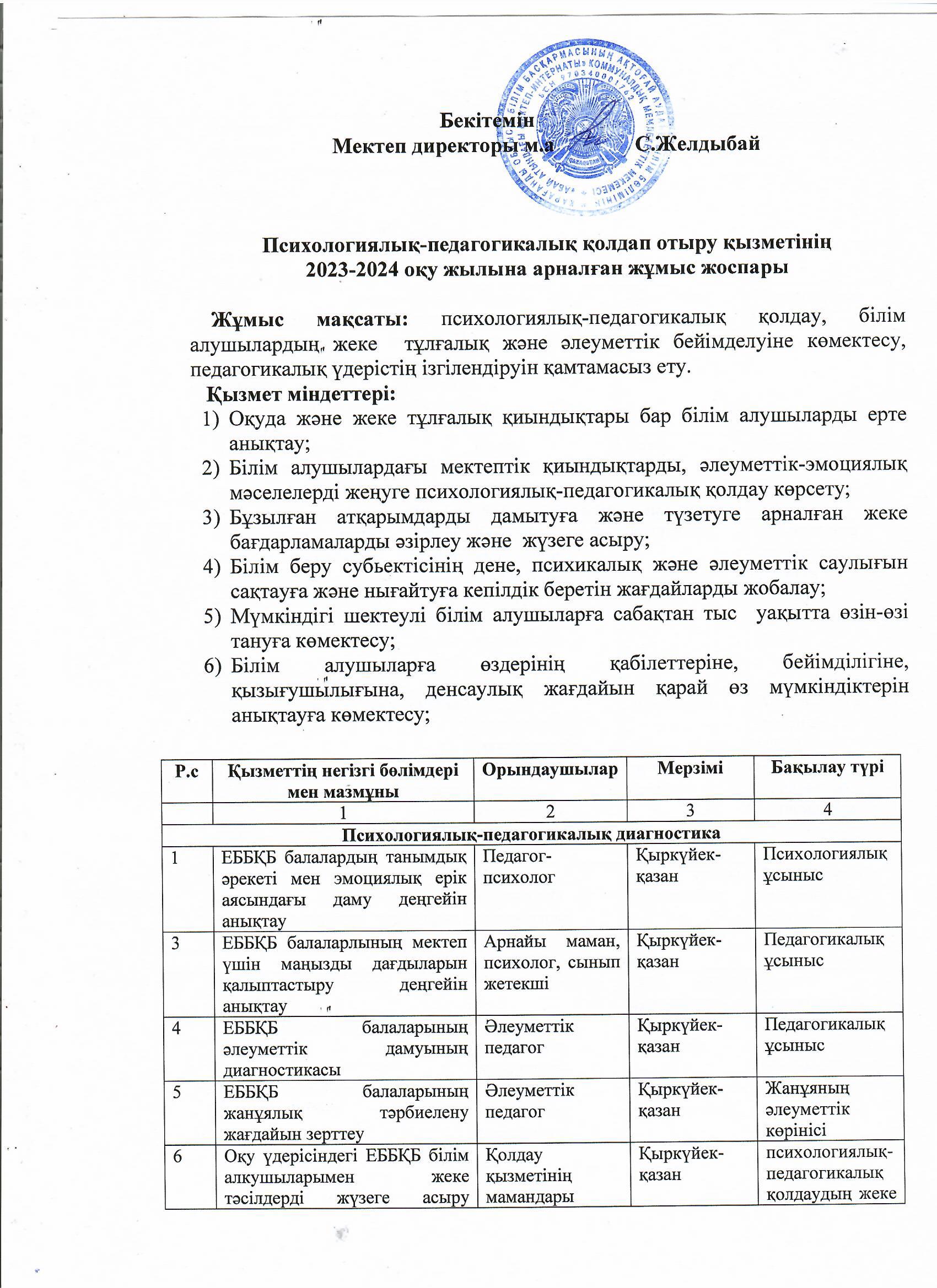 психологиялық қолдау қызметі жоспарыпсихологиялық қолдау қызметі жоспары |