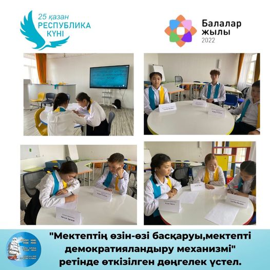 ДӨҢГЕЛЕК ҮСТЕЛ • Мектеп парламенті мүшелерінің қатысуымен "Мектептің өзін-өзі басқаруы мектепті демократияландыру механизмі ретінде" атты дөңгелек үстел өтті. #Республикакүні #Республикам_менің #Қазақстан_Республикасы #Туған_жер #менің_Отаным #Республикакүнібілім09 #ҚОББтәрбие #ШАШУБАЙМЕКТЕБІ #МектепПарламенті????
