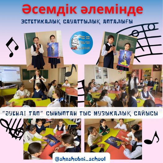 “ӘУЕНДІ ТАП” • Апталықтың сазды сайысы оқушылардың жүрегін жаулады! Түрлі аспаптармен танысып, оларды қолданған білім алушылар арасындағы музыкалық сайыс ерекше әсерде өтті. • Мақсаты: оқушылардың әнге деген құмарлығын байқау, түрлі әуендерді білуі, есте сақтау деңгейлерін анықтау арқылы сазға деген сүйіспеншіліктерін арттыру. Ұйымдастырушы ұстаз: Тусупбекова Роза Интзарбековна, музыка пәні мұғалімі @oqu_agartu_ministrligi @aimagambetov @obb_qaragandy @g.kozhakhmetoova @umckrg @bahyt_himaldin @arunamukasheva #ӘсемдікӘлемі #ЭстетикалықСауаттылықАпталығы #ҚОББтәрбие #ШАШУБАЙМЕКТЕБІ