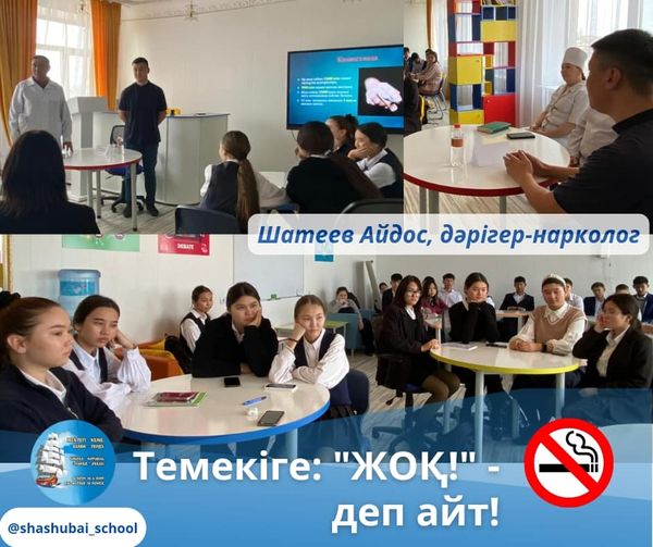 Темекіге: "ЖОҚ"деп айт! • Қарашаның әр үшінші бейсенбісінде Халықаралық темекі шегуден бас тарту күні. Бұл күні оқушыларымызбен пайдалы әңгіме-сұхбат өтті. Арнайы шақырылған қонағымыз бен мектеп дәрігерлері темекі шегудің зияны мен салдары туралы ақыл-кеңестерін айтты. ????????‍⚕️Айдос Алмасханұлы, дәрігер-нарколог: "Электронды темекі - бұл дәстүрлі темекіні ауыстыруға арналған темекі шегу процесін модельдейтін электронды құрылғы. Электрондық темекілерде шайырлар, бензол, канцерогендер, цианид, мышьяк, аммиак және басқа да зиянды заттар жоқ болғанымен, оданда зиянды заттар барын ескерте кету керек." ✅ Қарағанды облысының уәкілінің Жастар кеңесінің "Темекіге: ЖОҚ деп айт!" челленджін шашубайлық жастар қолдайды! @oqu_agartu_ministrligi @aimagambetov @obb_qaragandy @g.kozhakhmetoova @umckrg @bahyt_himaldin @arunamukasheva @bala_qorgau_uakili_krg #скажисигаретамнет???? #темекігежолжоқ???? #ҚОББтәрбие #ШАШУБАЙМЕКТЕБІ
