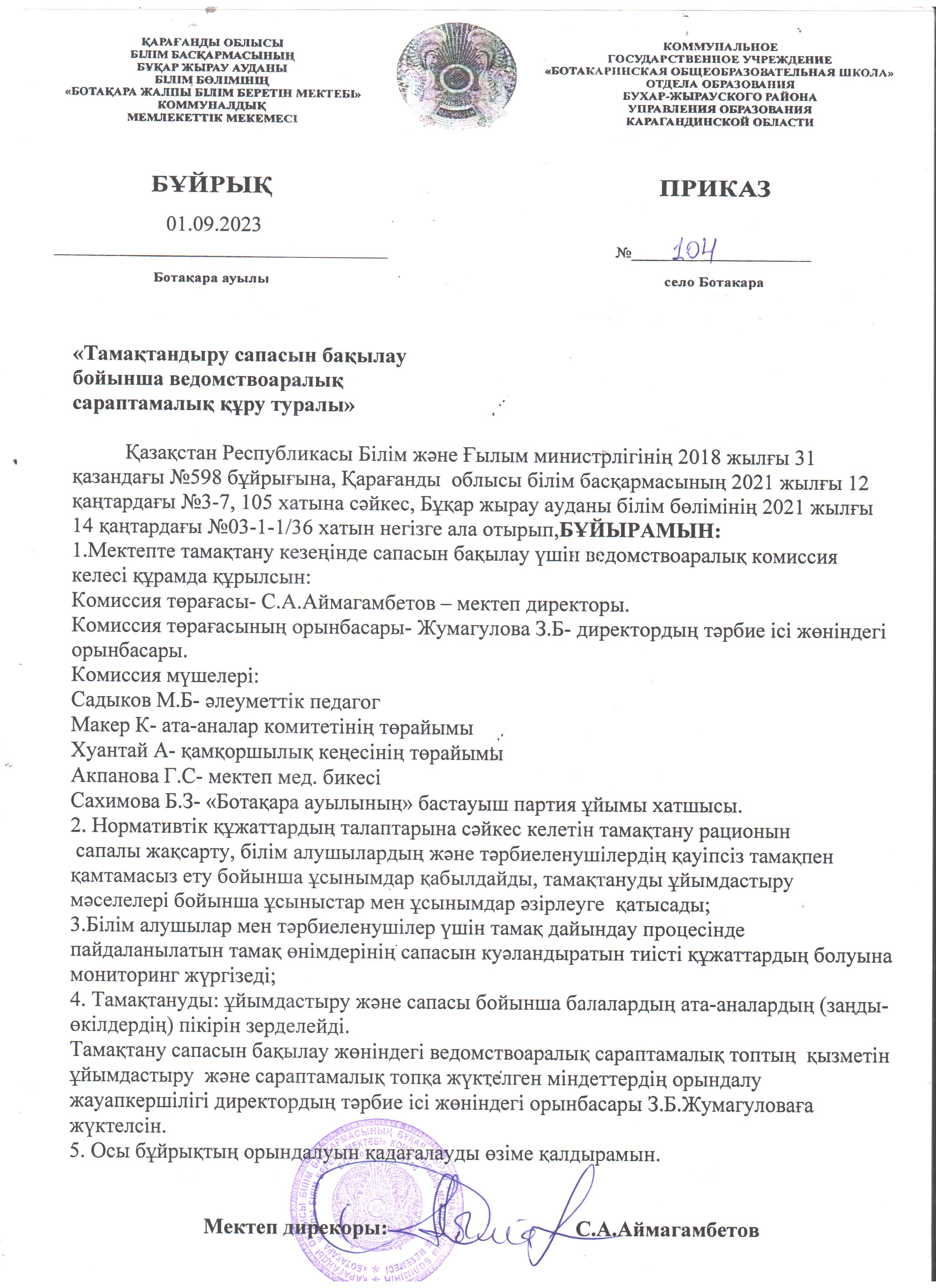Оқушыларды ыстық тамақпен қамтамасыз ету туралы бұйрықОқушыларды ыстық тамақпен қамтамасыз ету туралы бұйрық |