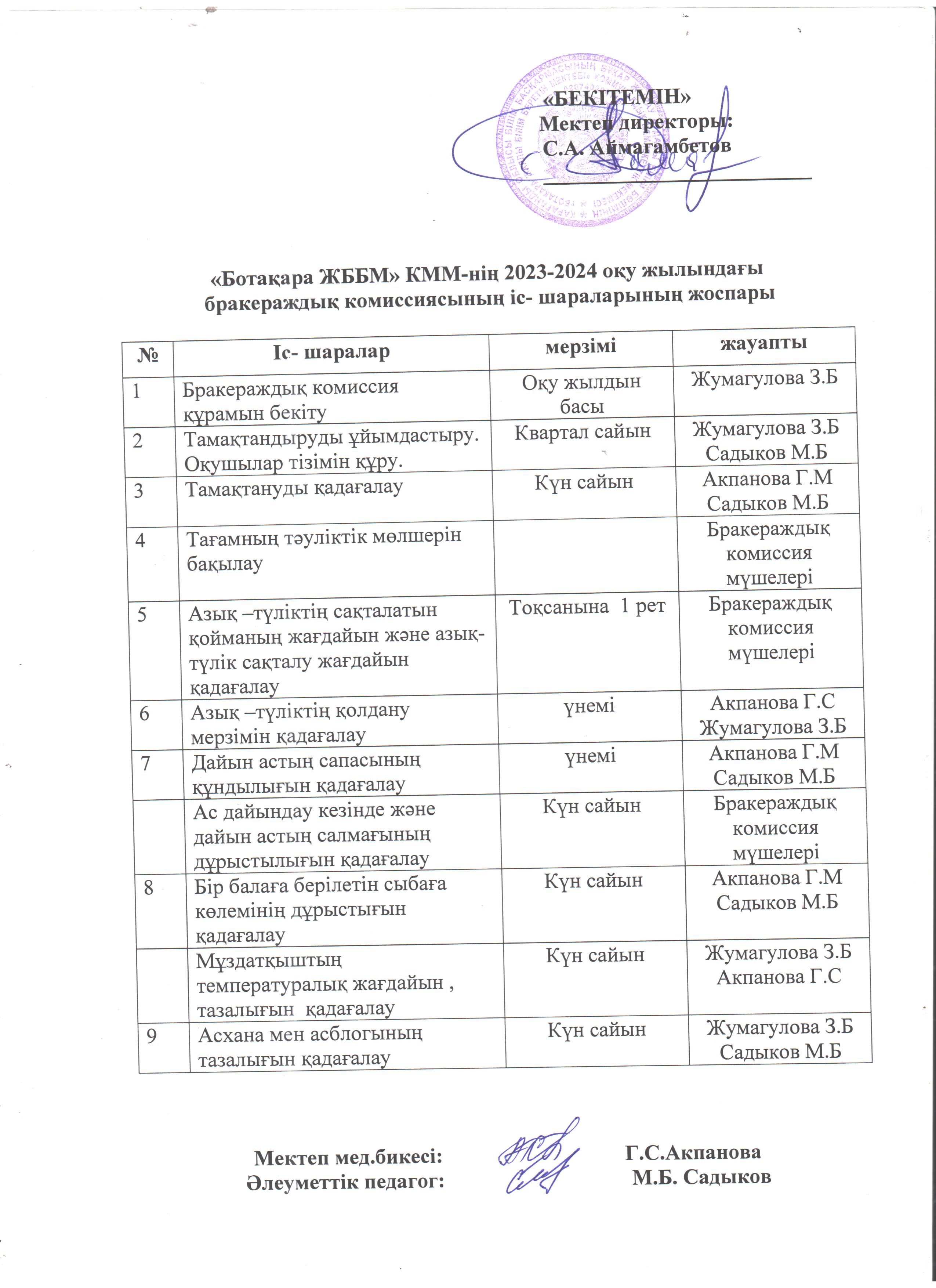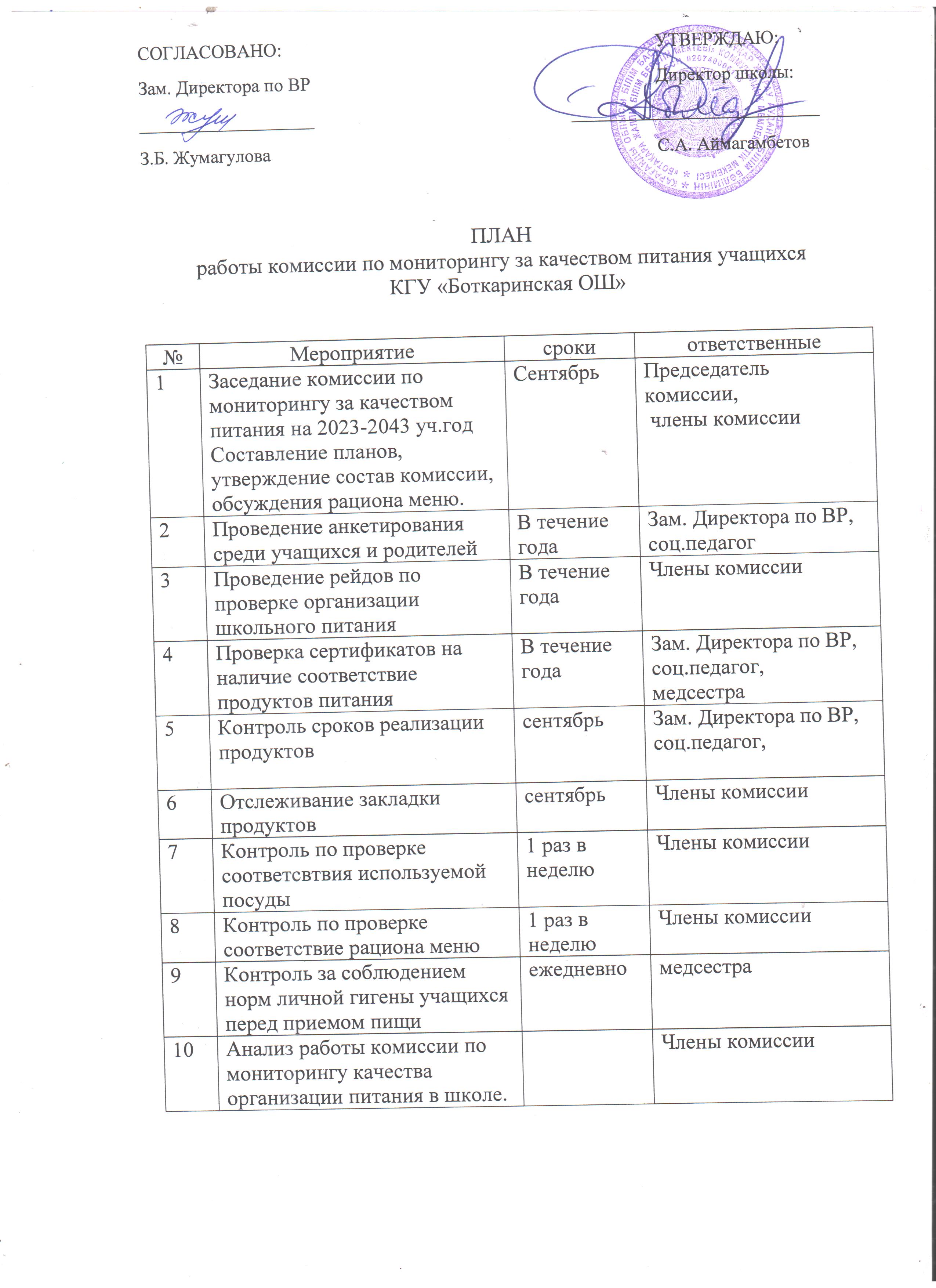Тамақтану сапасын мониторингілеу жөніндегі комиссияның жұмыс жоспарыТамақтану сапасын мониторингілеу жөніндегі комиссияның жұмыс жоспары |