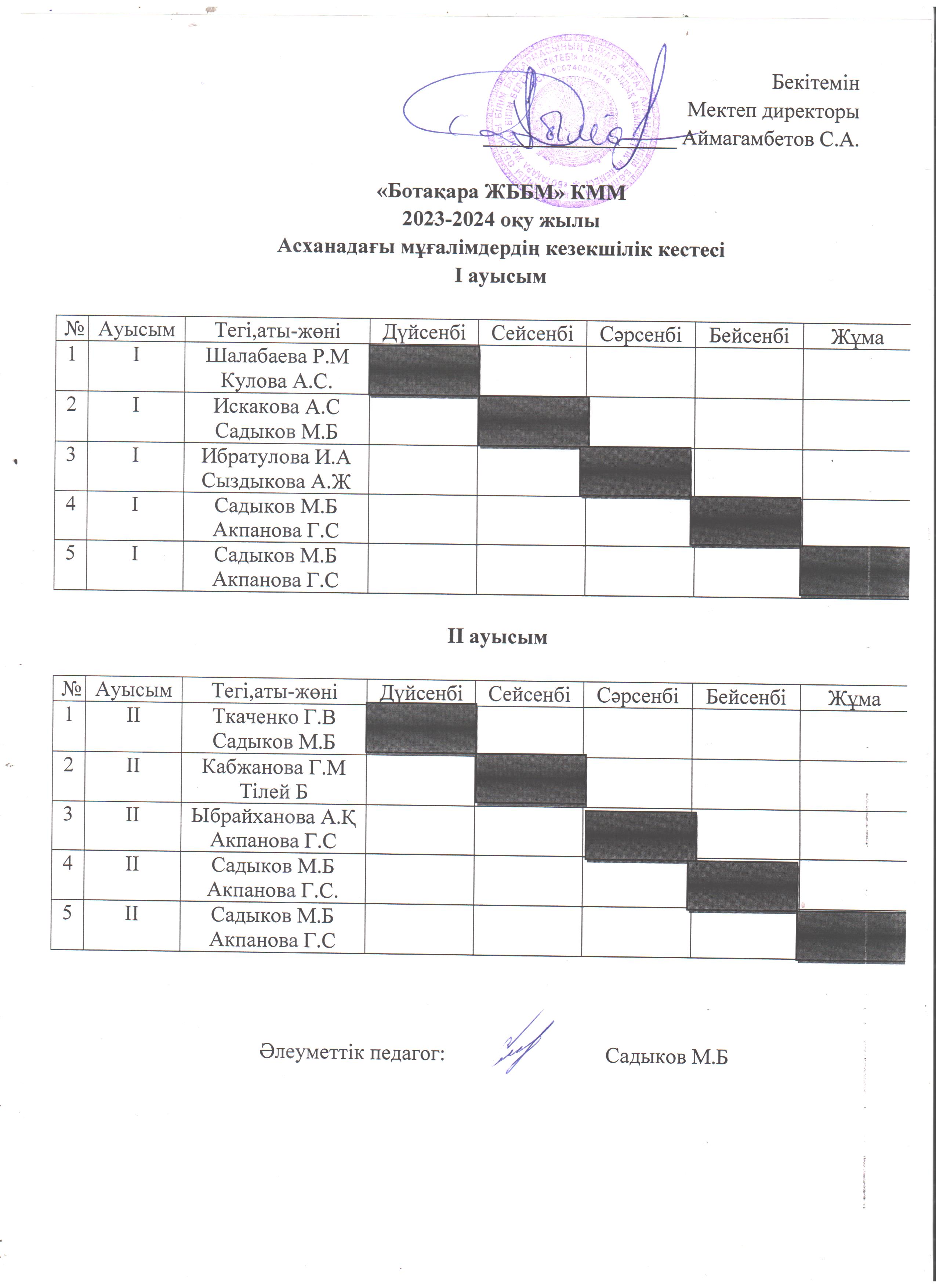 Асханадағы мұғалімдердің кезекшілік кестесіАсханадағы мұғалімдердің кезекшілік кестесі |