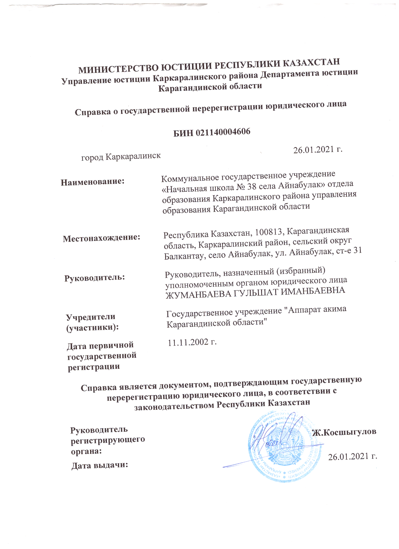 Организации> КГУ «Начальная школа №38 села Айнабулак"