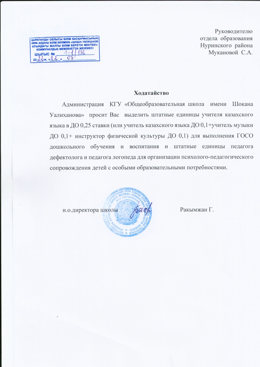Ходатайство в районный отдел образованияходатайство о выделении штатных единиц в миницентр |