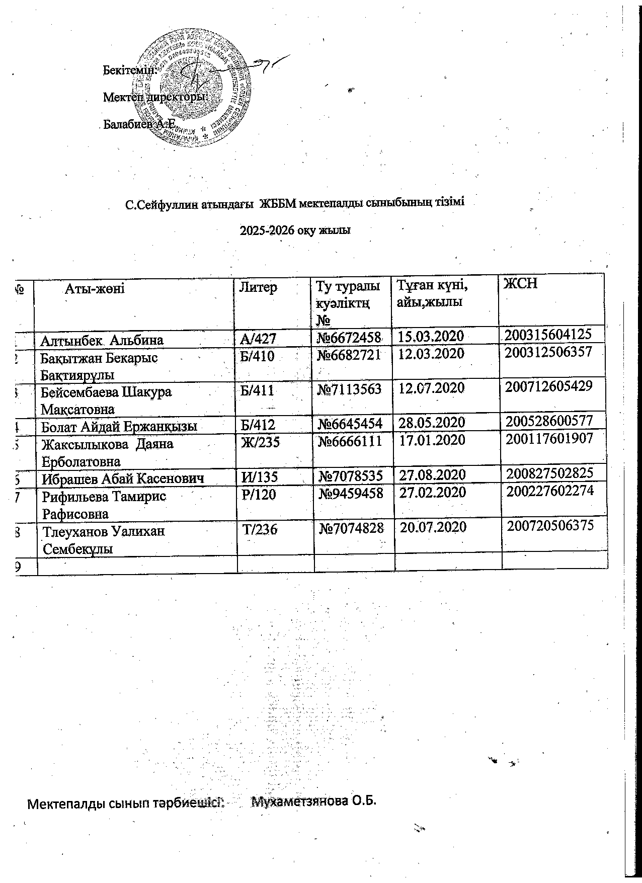 Мектепалды даярлық тобының оқушылар тізімі 2025-2026 оқу жылы. |
