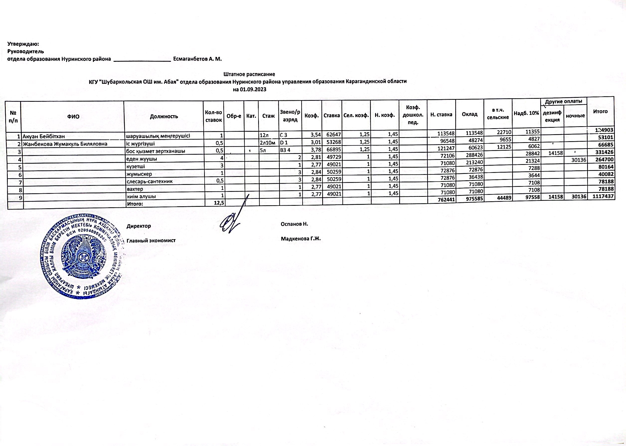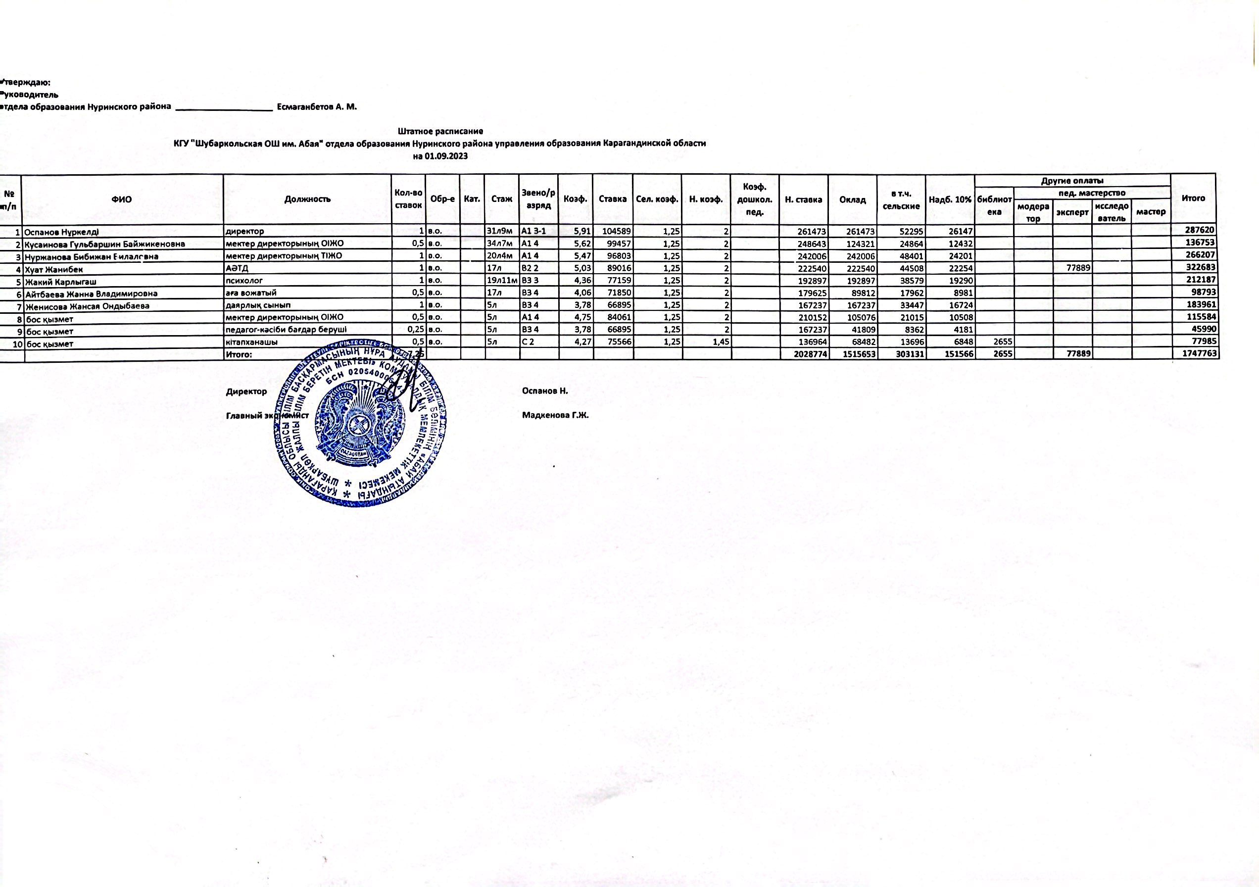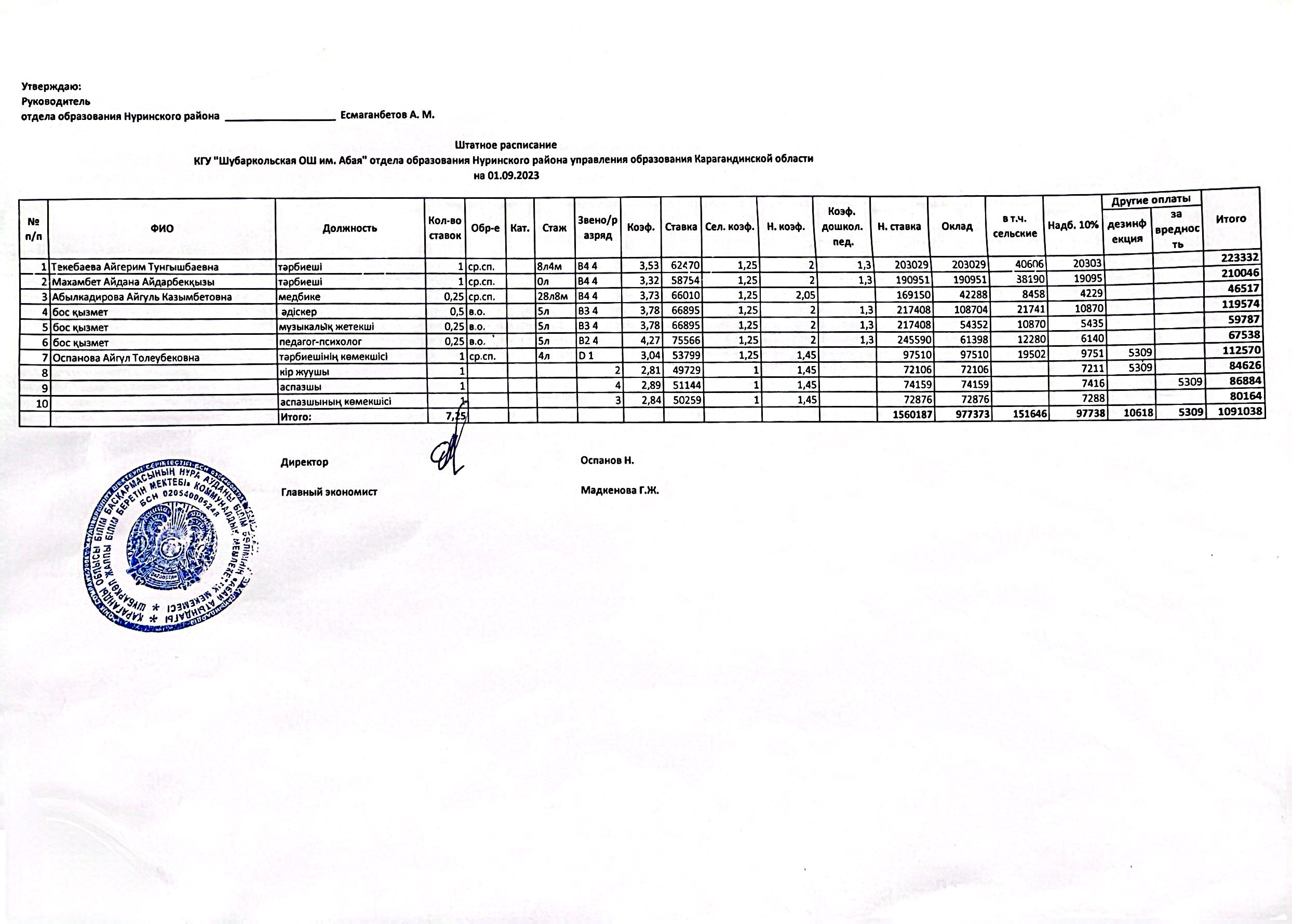 Штатное расписаниеШтатное расписание |