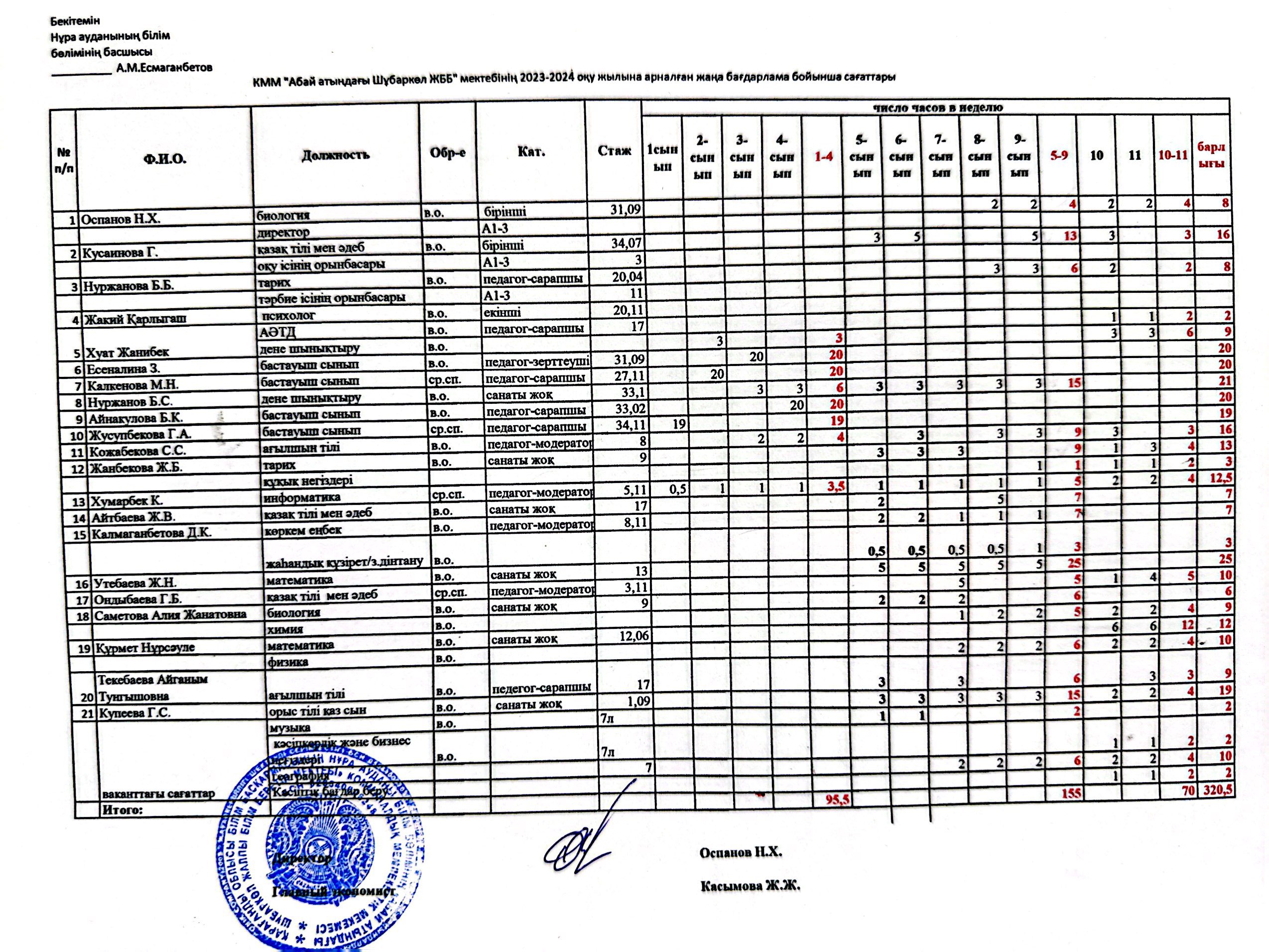 Оқу жоспары 2023-2024 оқу жылыАбай атындағы Шұбаркөл ЖББ мектебінің оқу жоспары |
