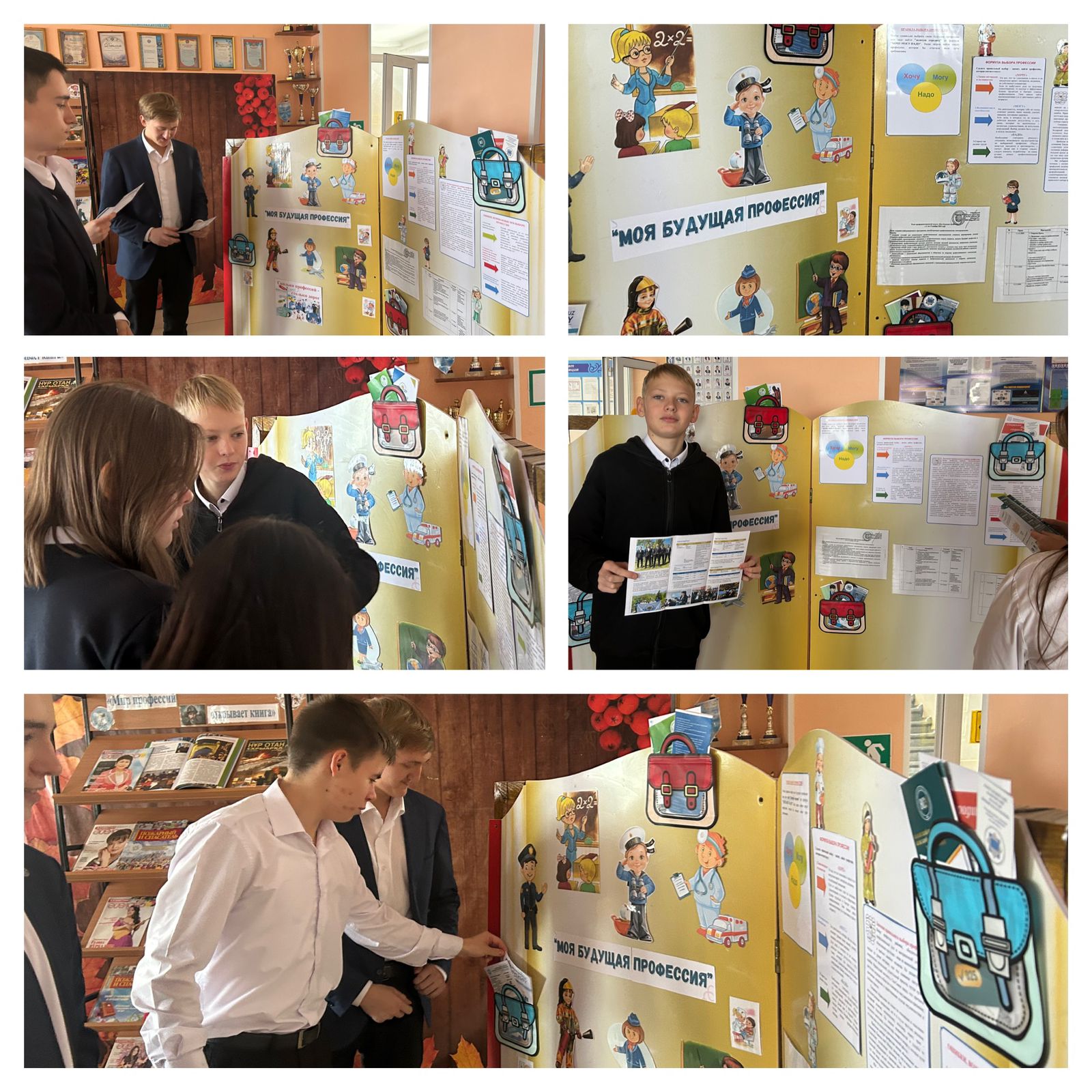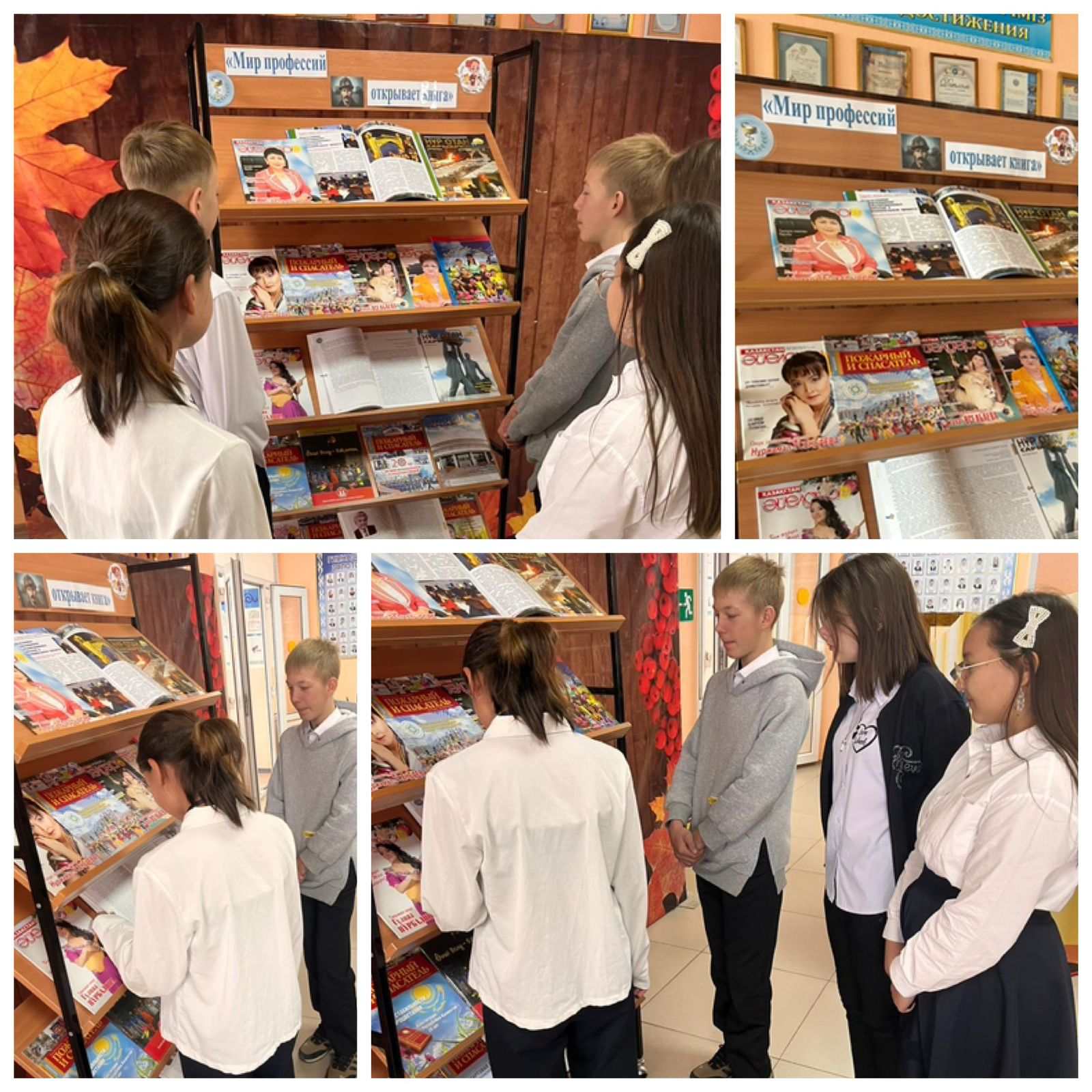 Мамандықтар әлемі кітап ашадыКәсіптік бағдар беру апталығы аясында гимназия кітапханашысы Л.А.Маркова "Мамандықтар әлемі кітап ашады" атты кітап-тақырыптық көрме ұйымдастырды.