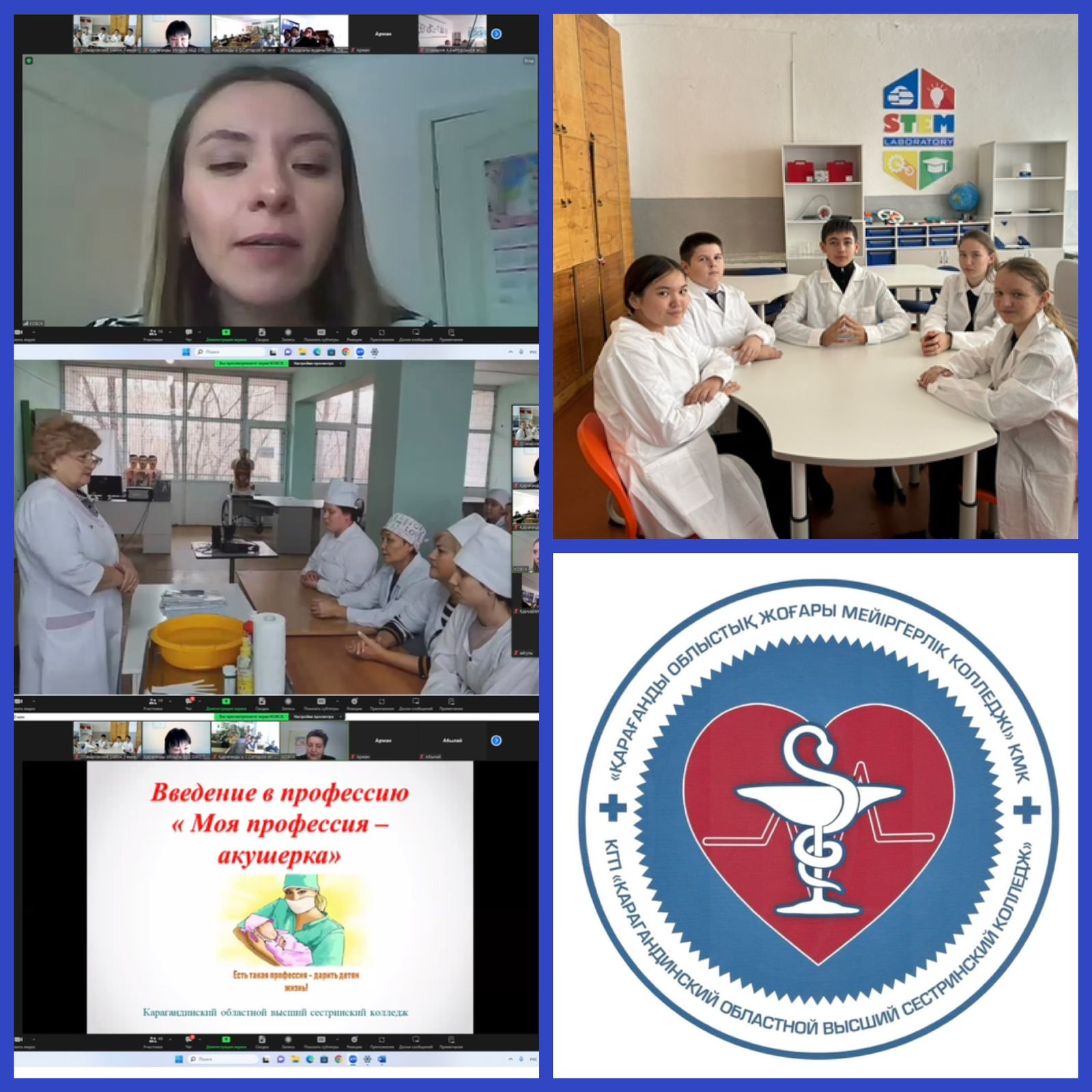 "Медицинаға қадам" жобасы аясында "№9 гимназия базасындағы Тірек мектебі (ресурстық орталық)" КММ-де 7-8 сынып оқушыларға арналған "Мамандыққа кіріспе", "Мейірбике ісі", "Акушерлік ісі" тақырыбында онлайн кәсіптік бағдар беру жұмысы, дәріс және "Қарағанды облыстық жоғары мейірбике колледжі" КМК экскурсиясы өтті |