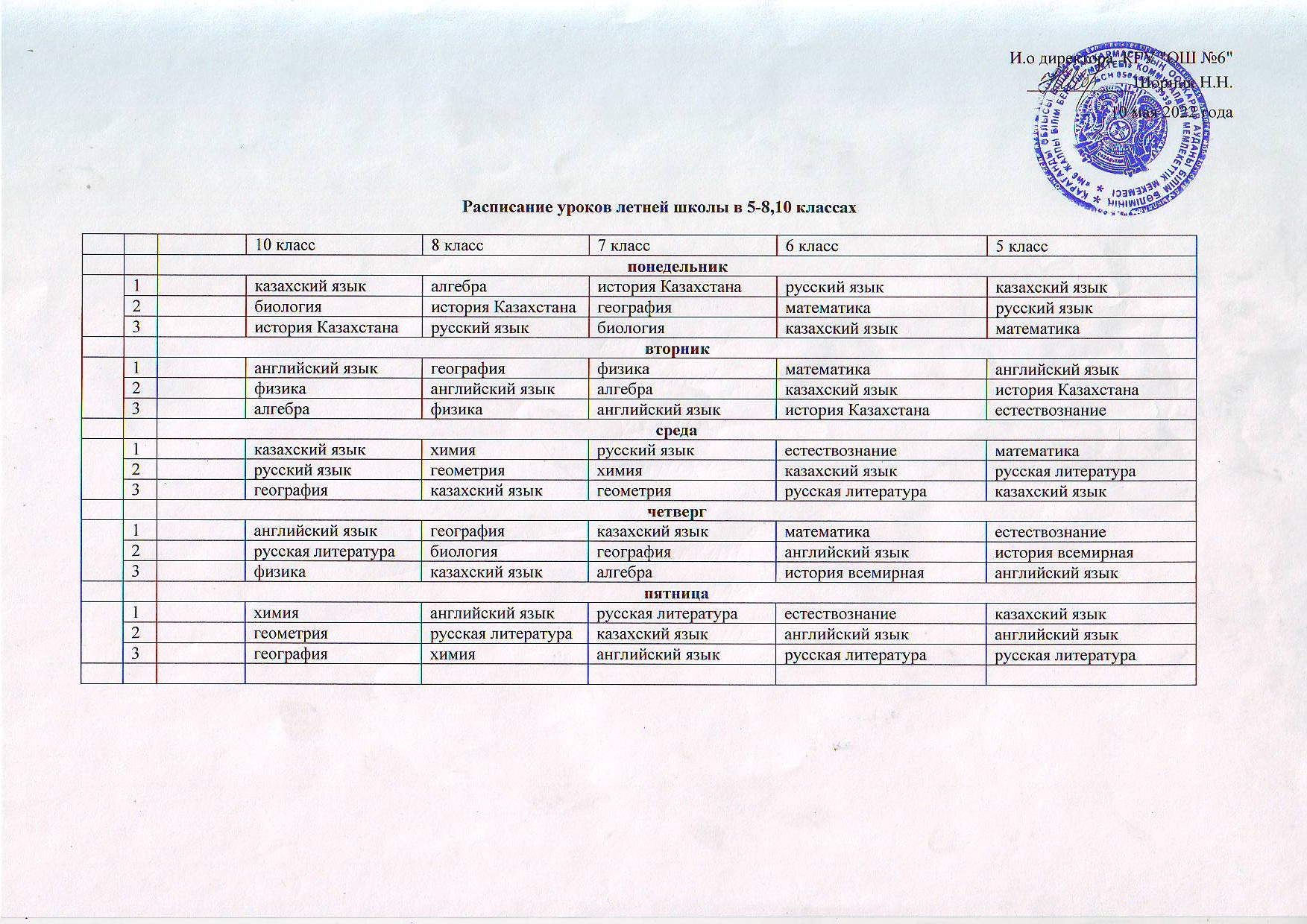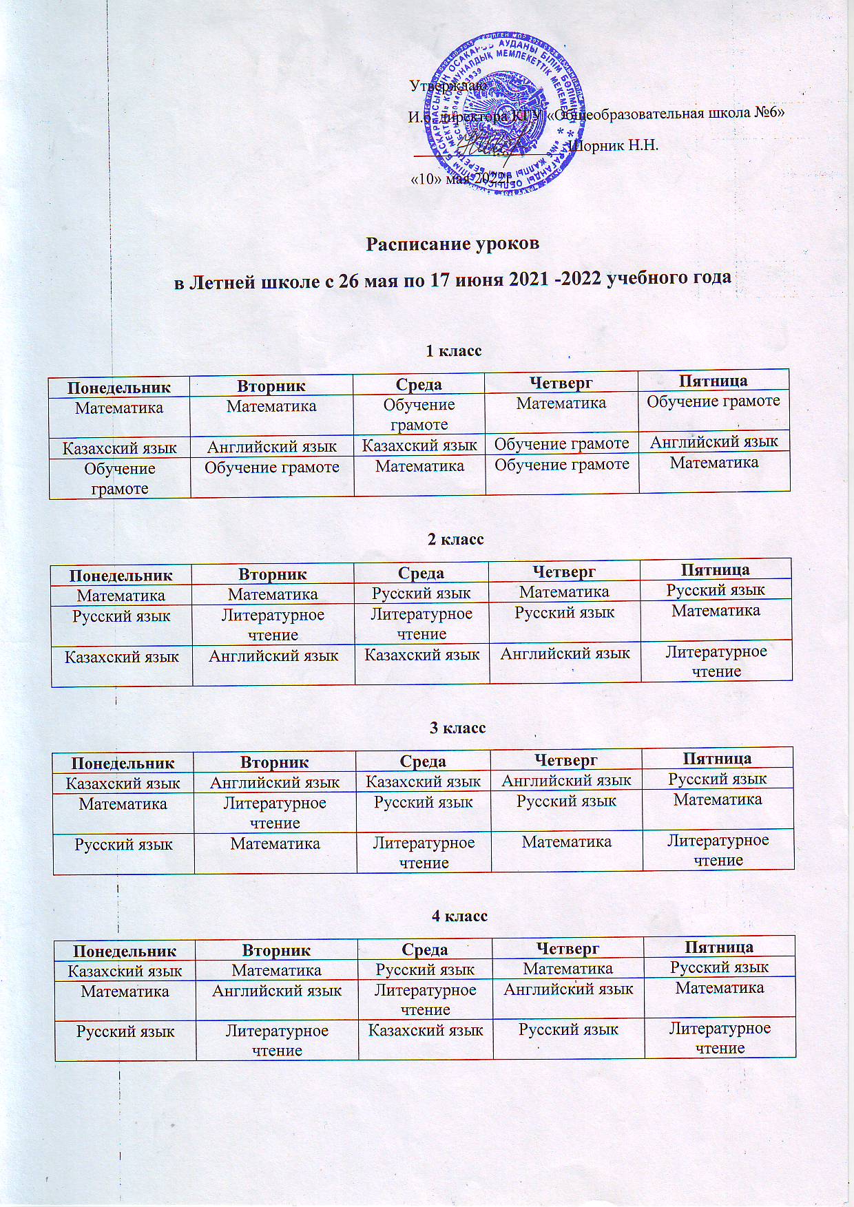 Жазғы мектептің 27 мамыр мен 17 маусым аралығындағы сабақ кестесіЖазғы мектептің 27 мамыр мен 17 маусым аралығындағы сабақ кестесі |