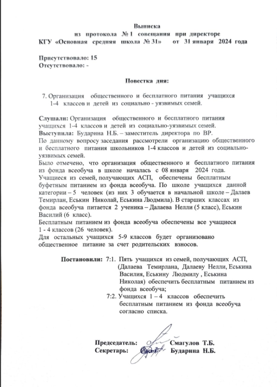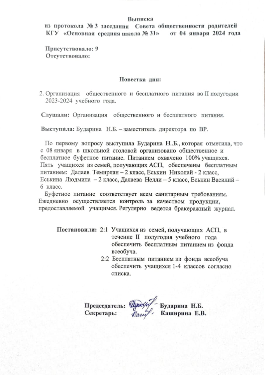школьное питаниевыписка из протокола № 3 |