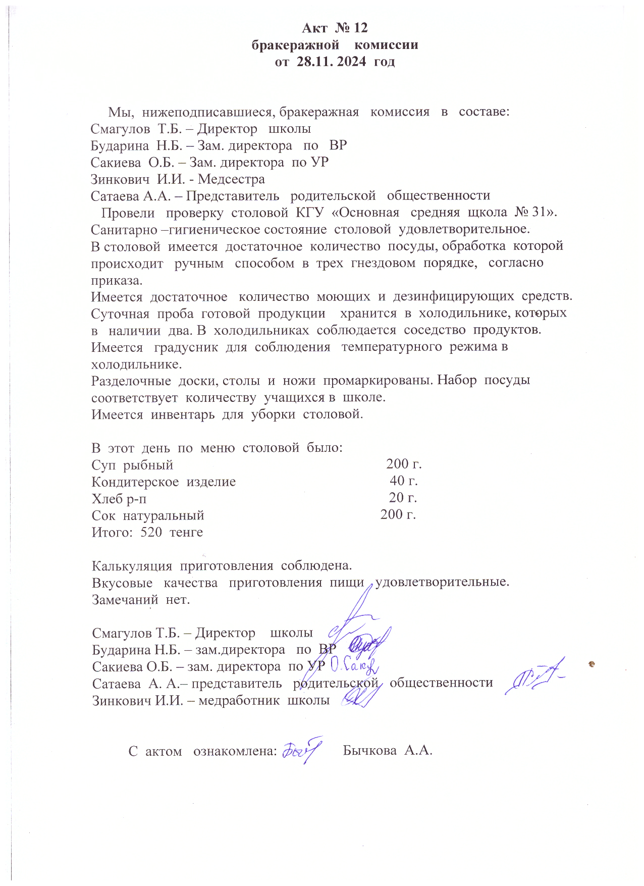 школьное питаниеакт №11 бракеражной комиссии от 20.11.2024 года |
