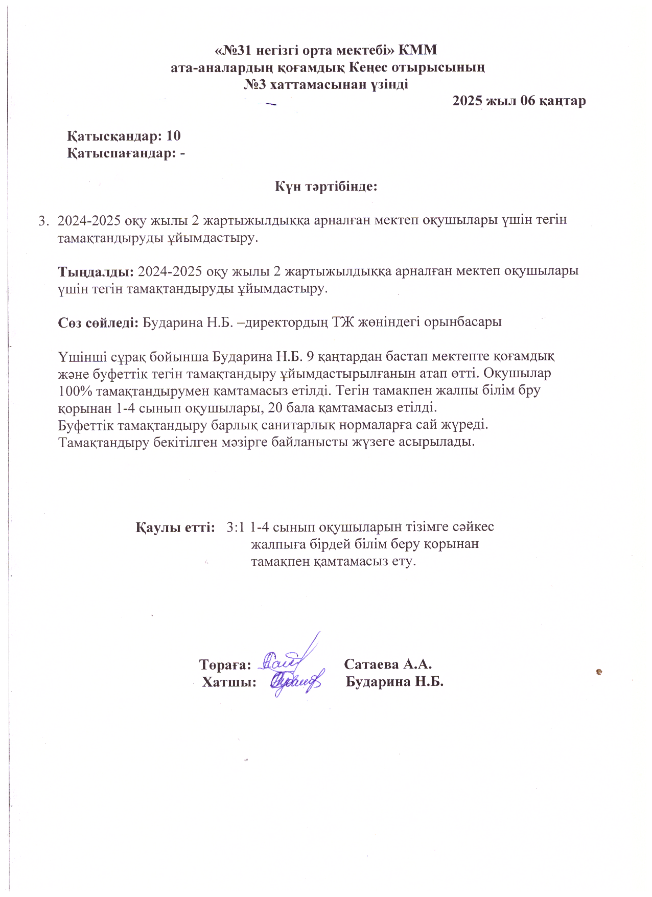 выписка из протокола №3 заседания Совета общественности родителей от 06.01.2025 года каз