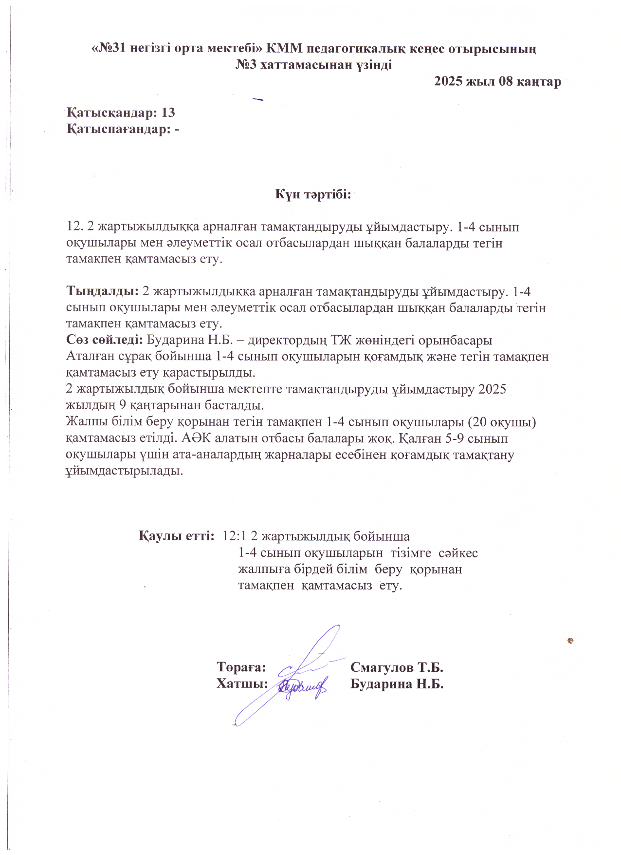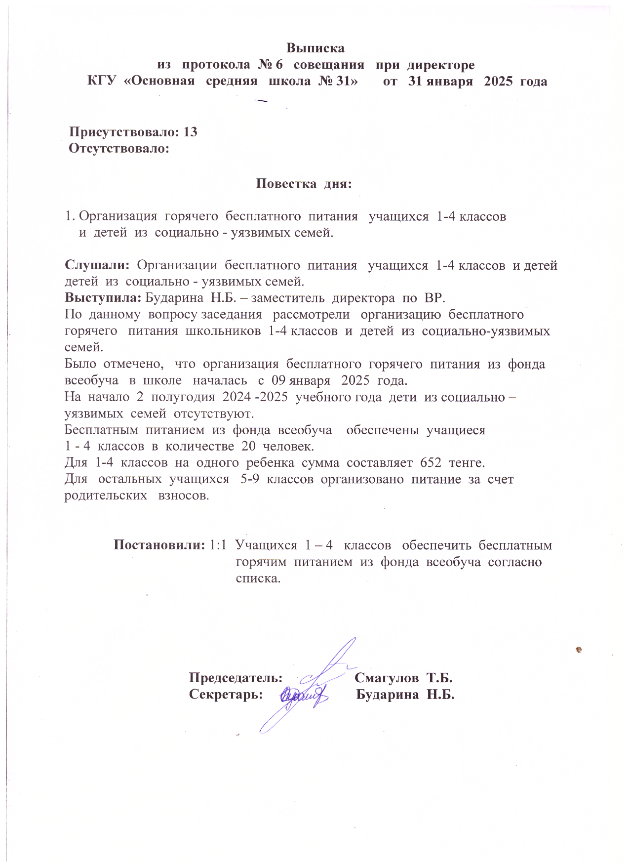 выписка из протокола №6 совещания при директоре от 31.01.2025 года каз
