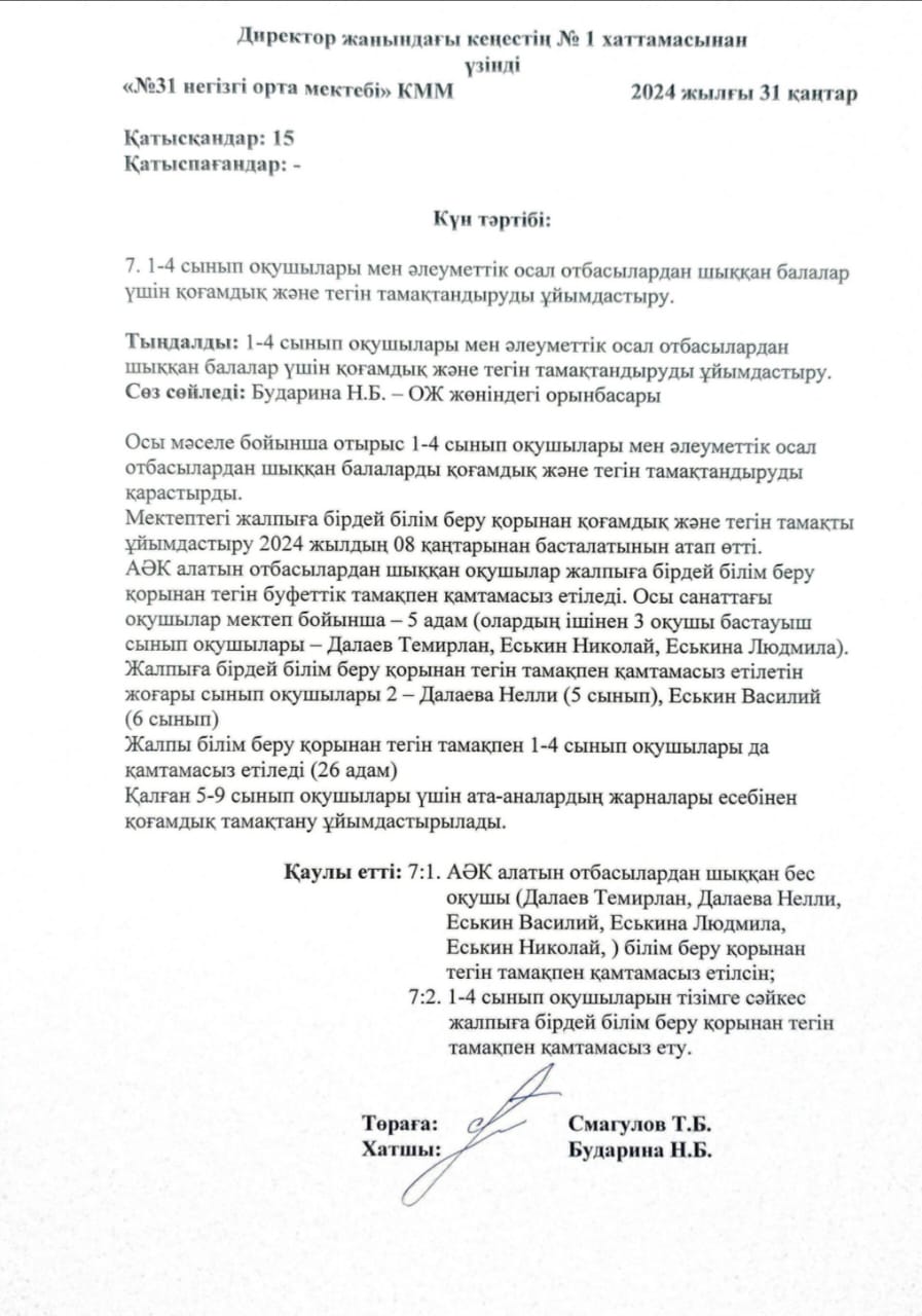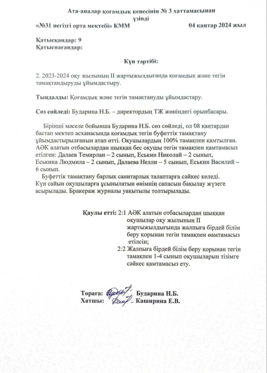 Қарағанды облысы Білім басқармасы Осакаров ауданының білім бөлімінің "№ 31 негізгі орта мектебі " КММ