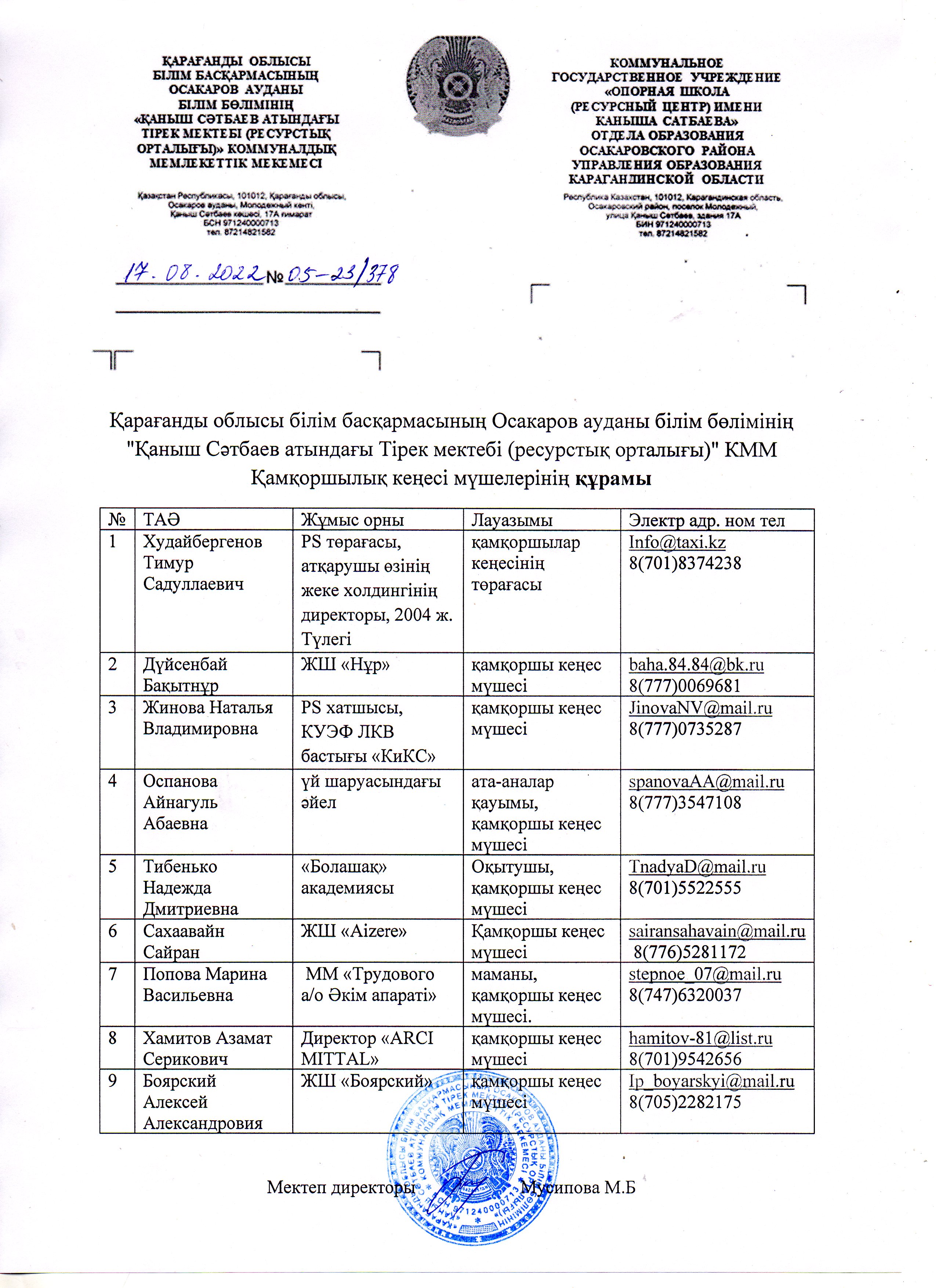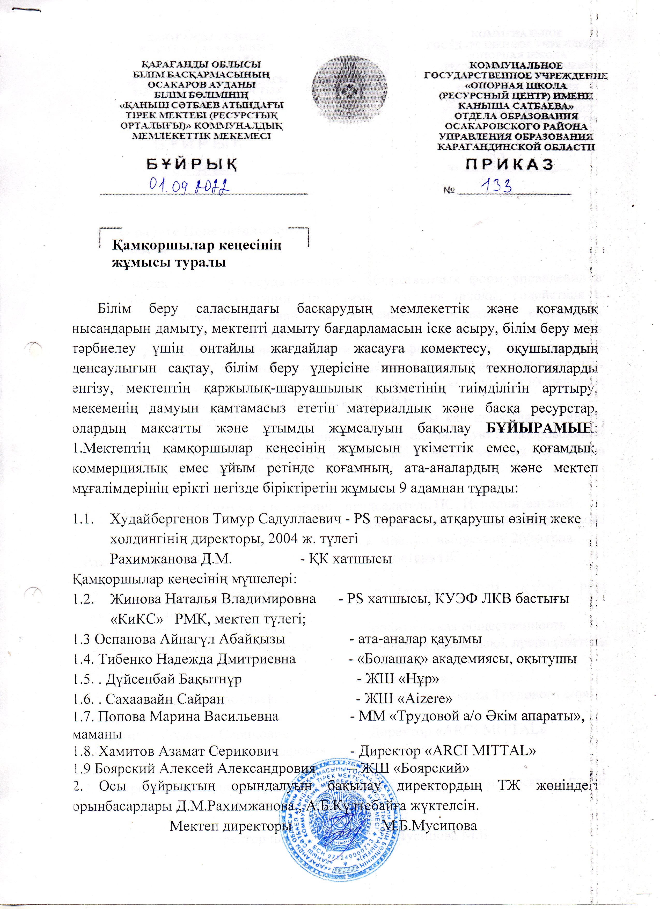 Қамқоршылар кеңесінің жұмысы туралы БұйрықҚомқоршылар кеңесінің жұмыс жоспары |
