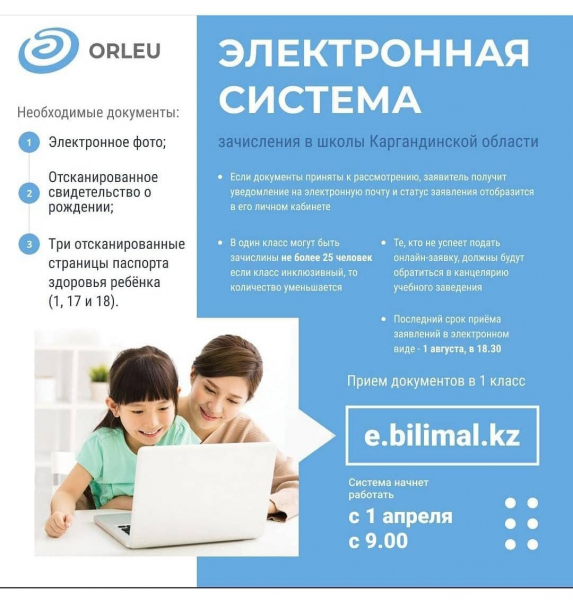 1-сыныпта құжаттарды қабылдау1-сыныпқа құжаттарды қабылдау 2022 жылғы 1 сәуірден 1 тамызға дейін |