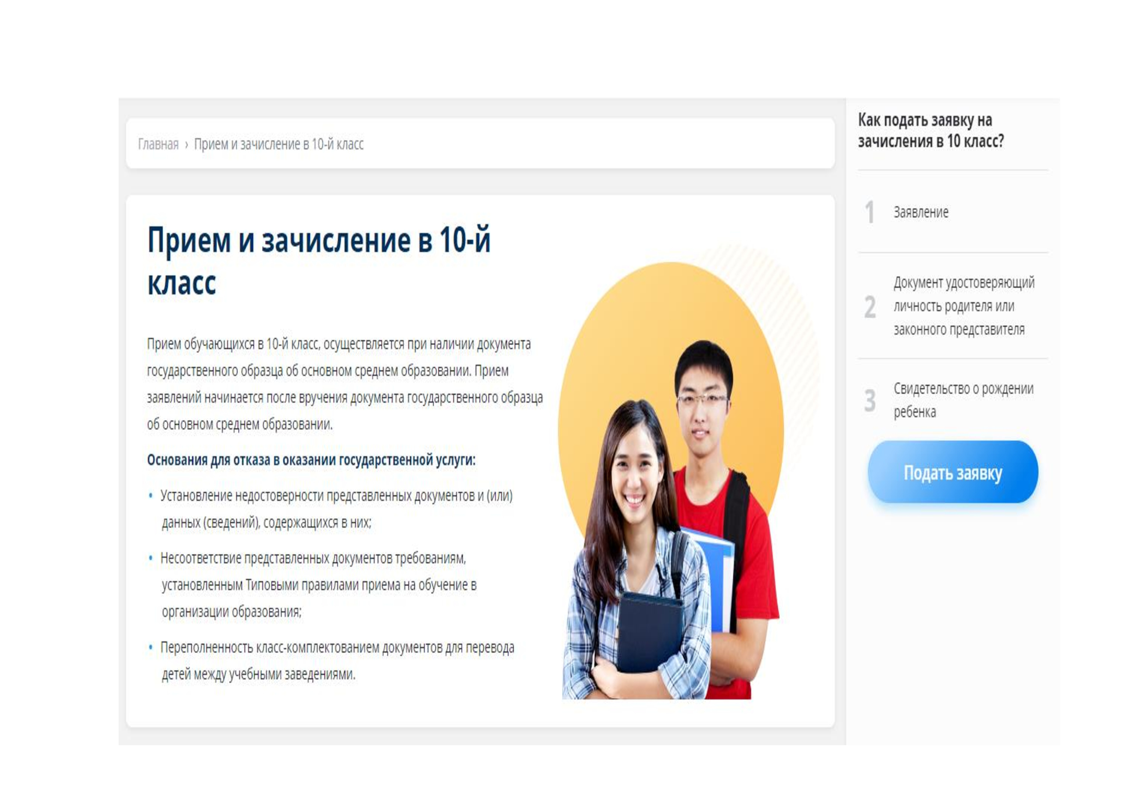10-сыныпқа құжаттарды қабылдауПрием документов в 10 класс до 15 августа 2022 года |