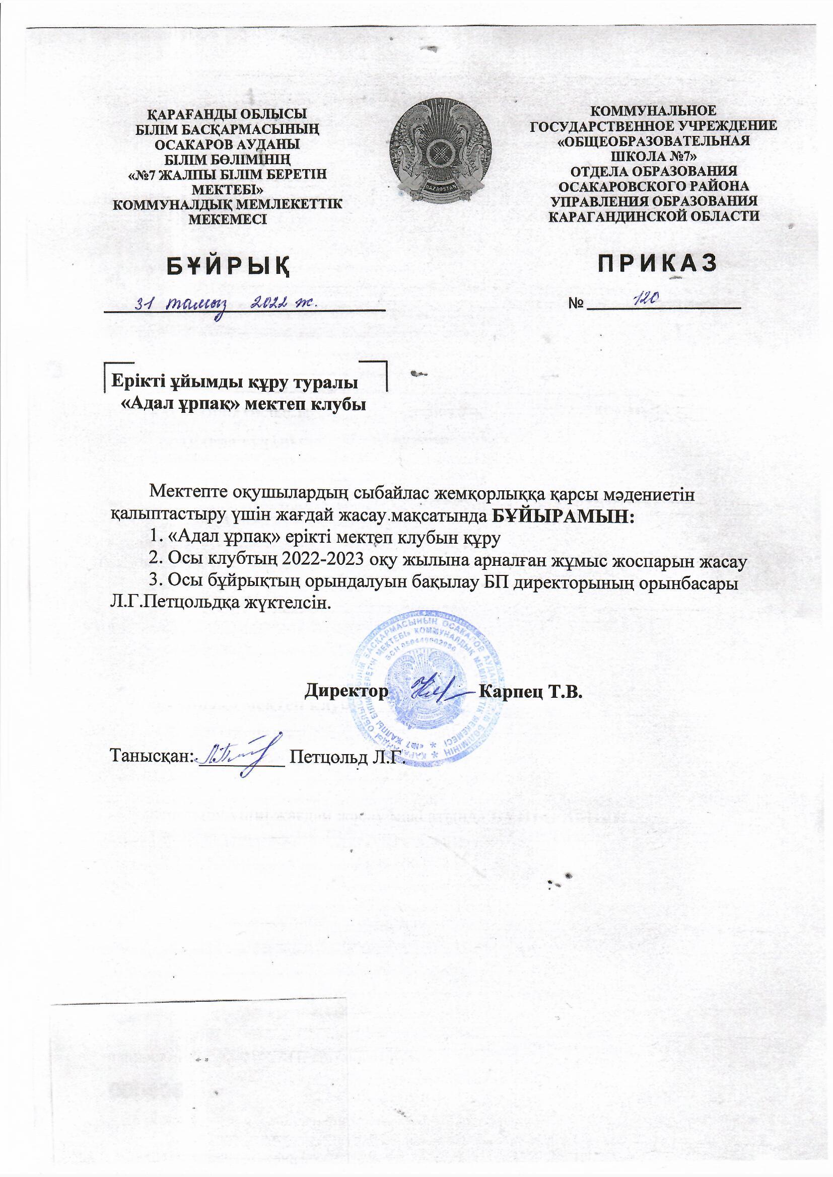 Дәреже: Мектеп клубы "Адал Ұрпақ"