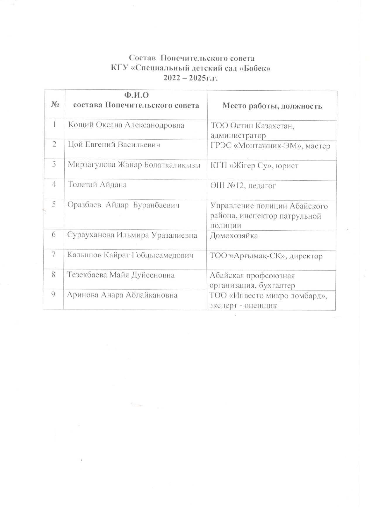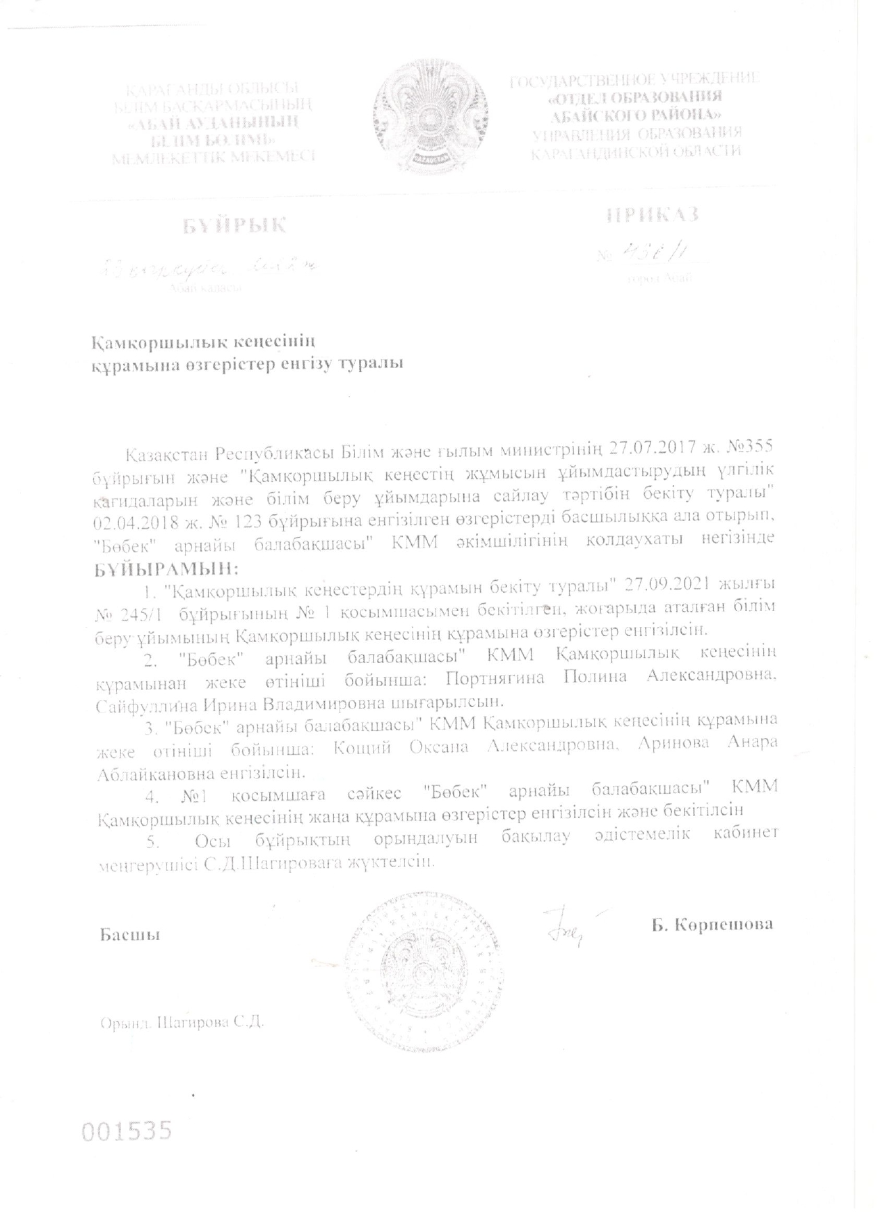 БұйрықПриказ о внесении изменений в состав попечительского совета |