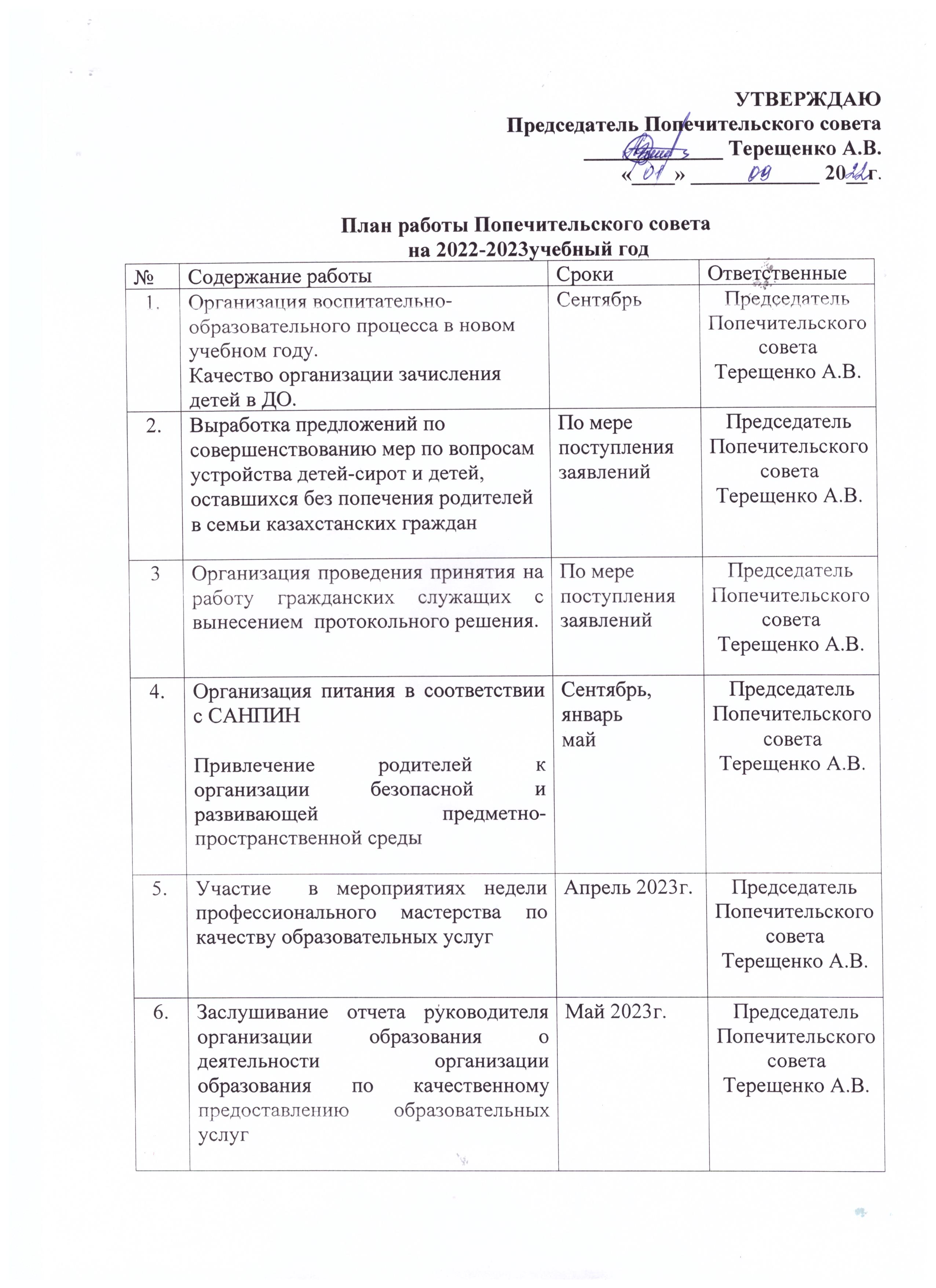Қамқоршылық кеңестің жұмыс жоспарыҚамқоршылық кеңестің жұмыс жоспары 2022-2023 |