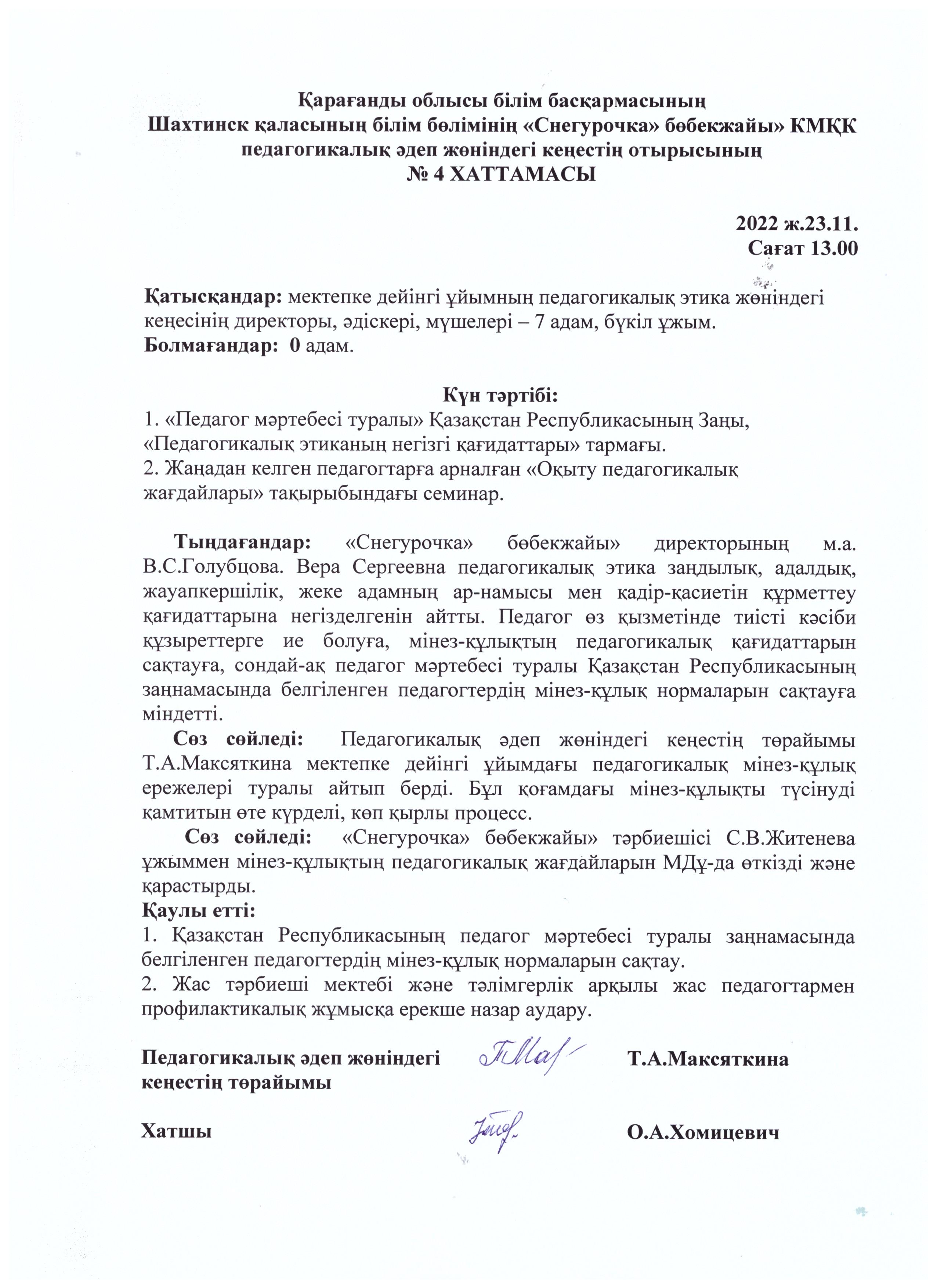 Протокол №4 заседания совета по педагогической этике23.11.2022 |