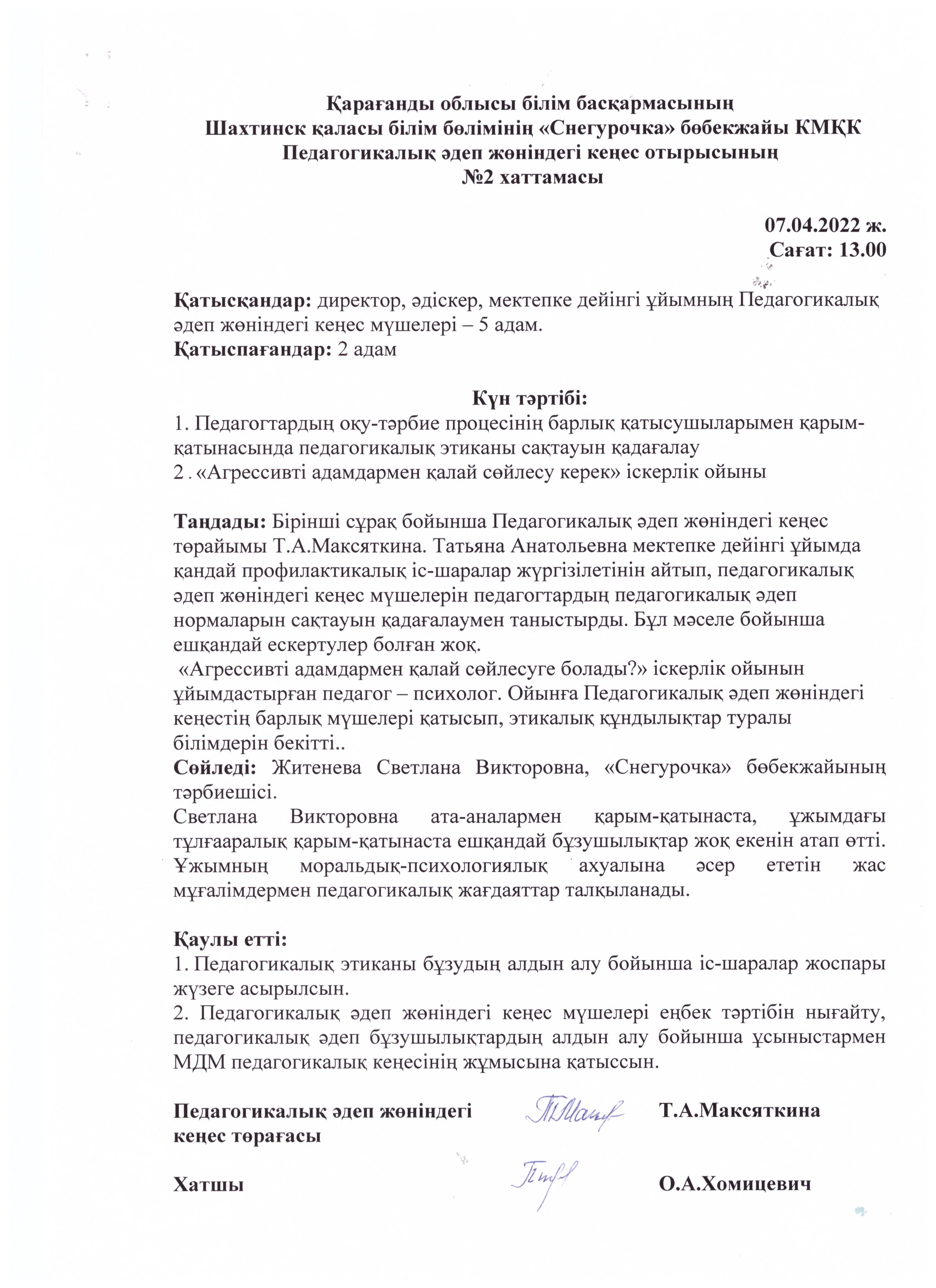 Протокол №2 заседания совета по педагогической этике07.04.2022 |