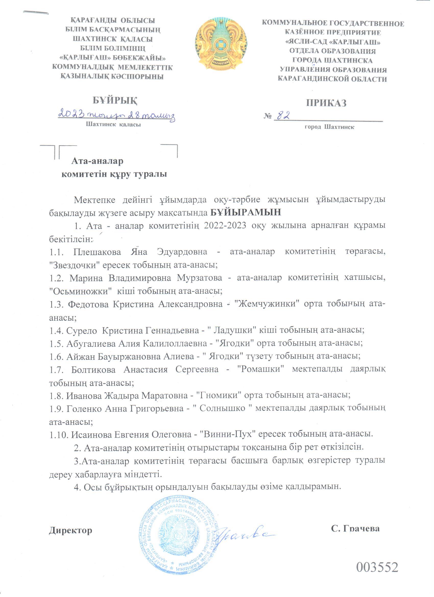 Ата-аналар комитетін құру туралы бұйрықАта-аналар комитетін құру туралы бұйрық |
