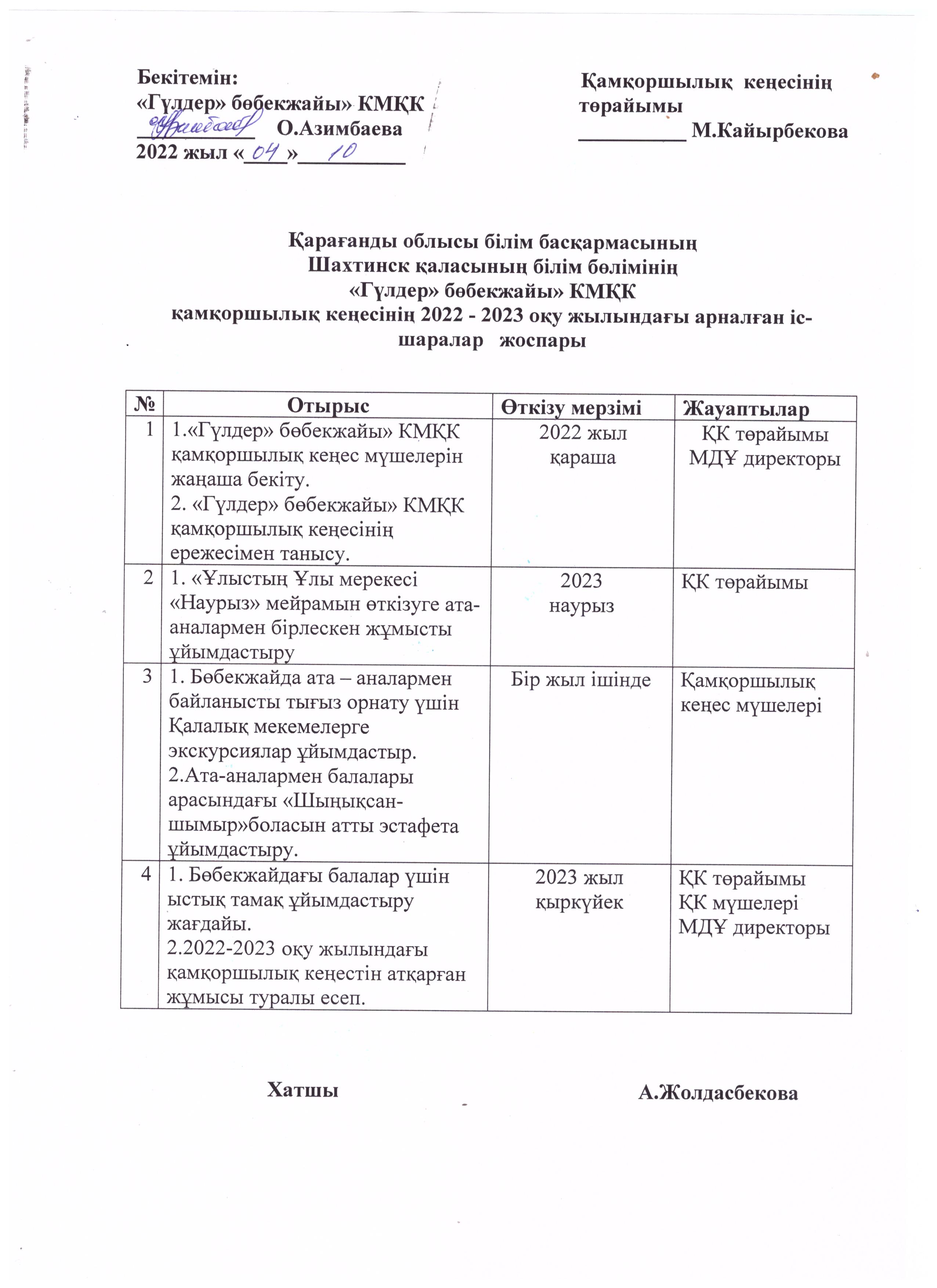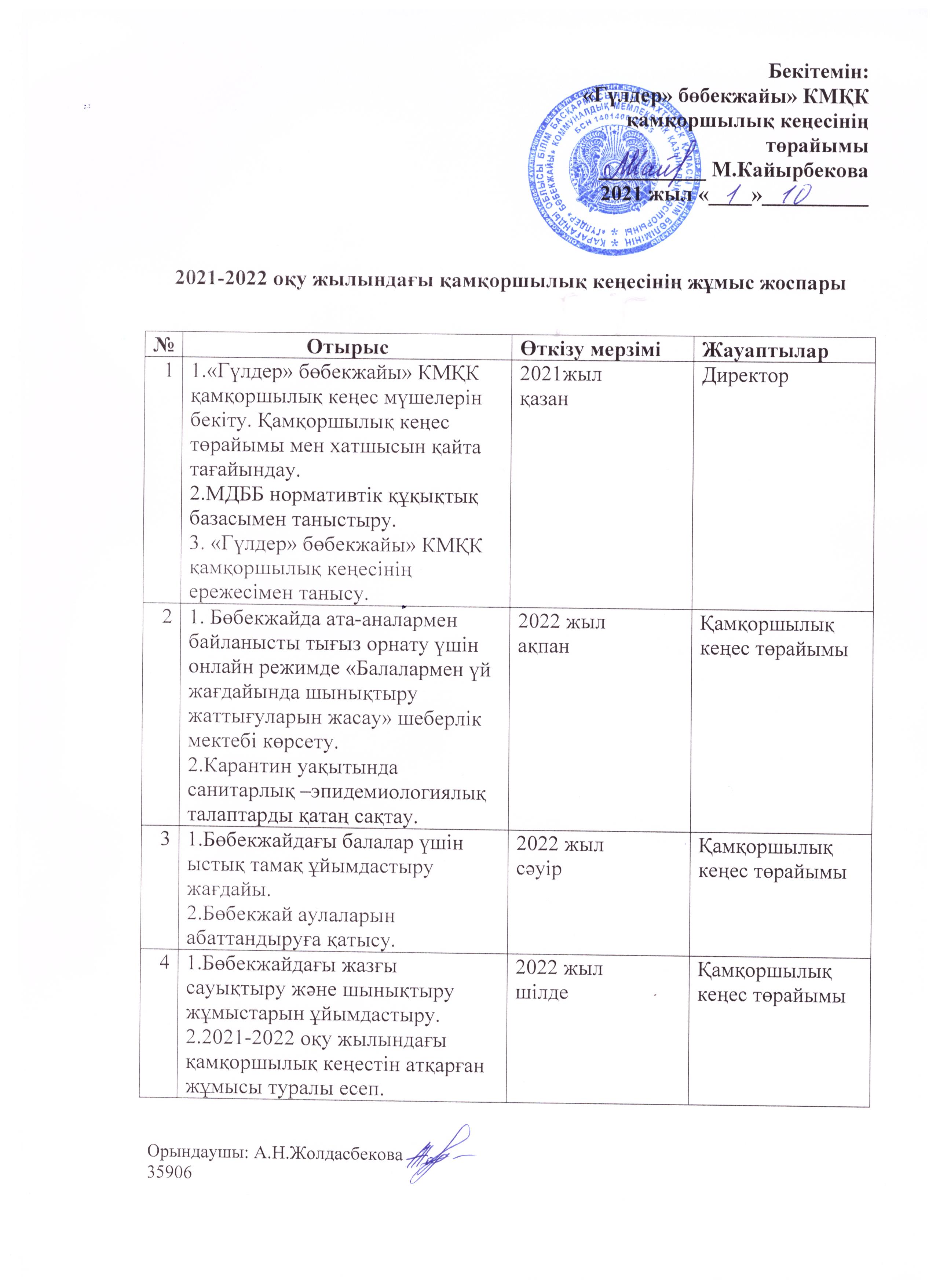2021-2022 жылдардағы қамқоршылық кеңестің жұмыс жоспары