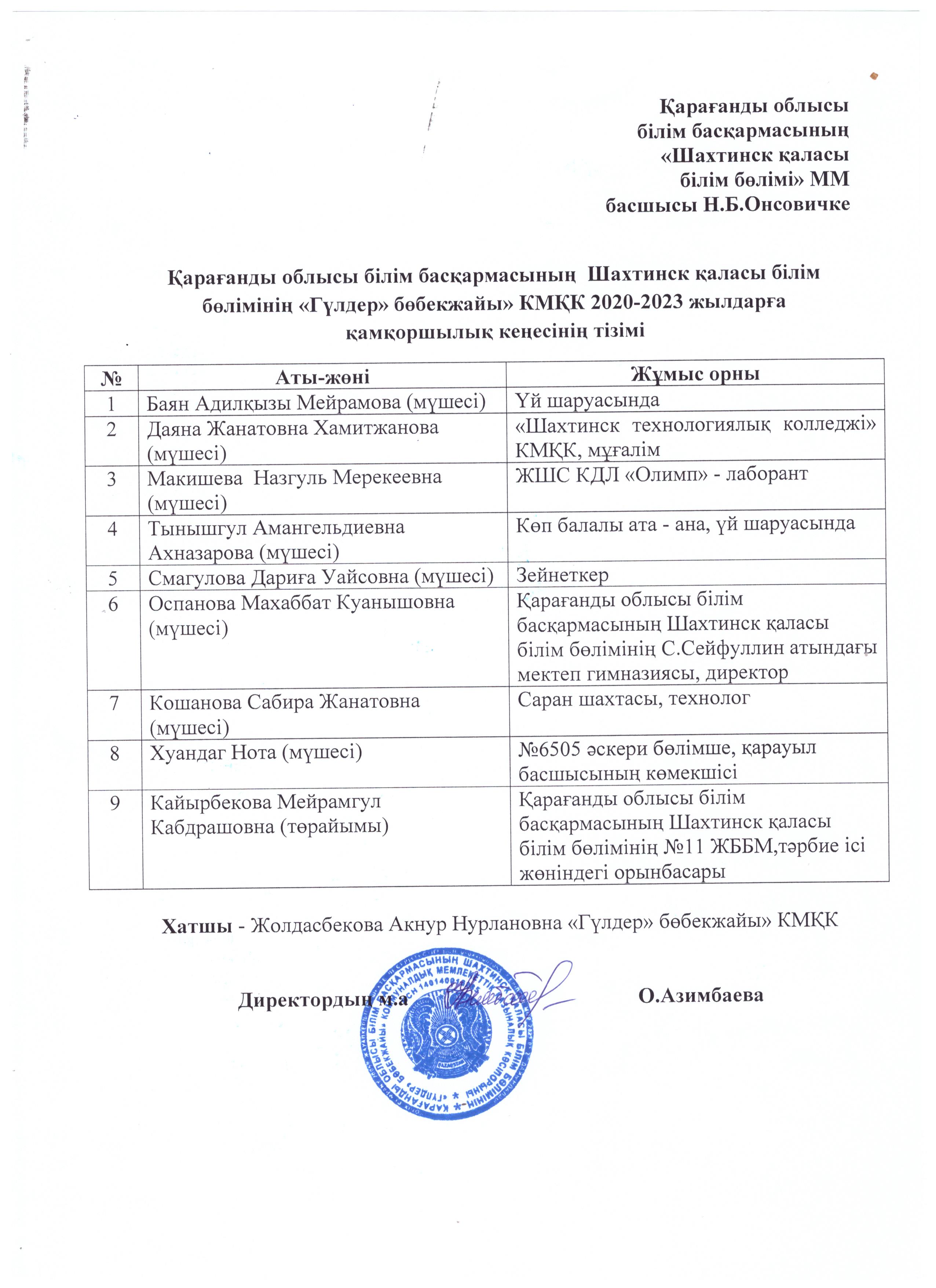 2020-2023 жылдарға қамқоршылық кеңес тізімі