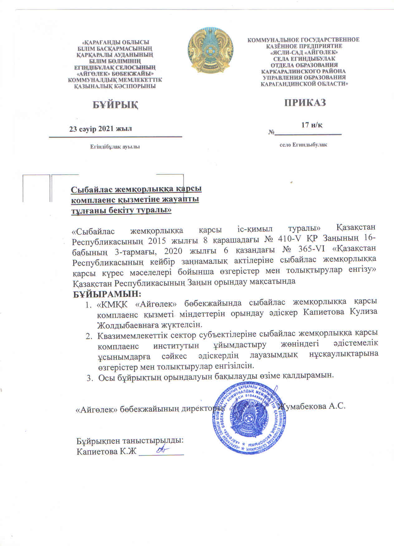 Дәреже: Противодействие коррупции