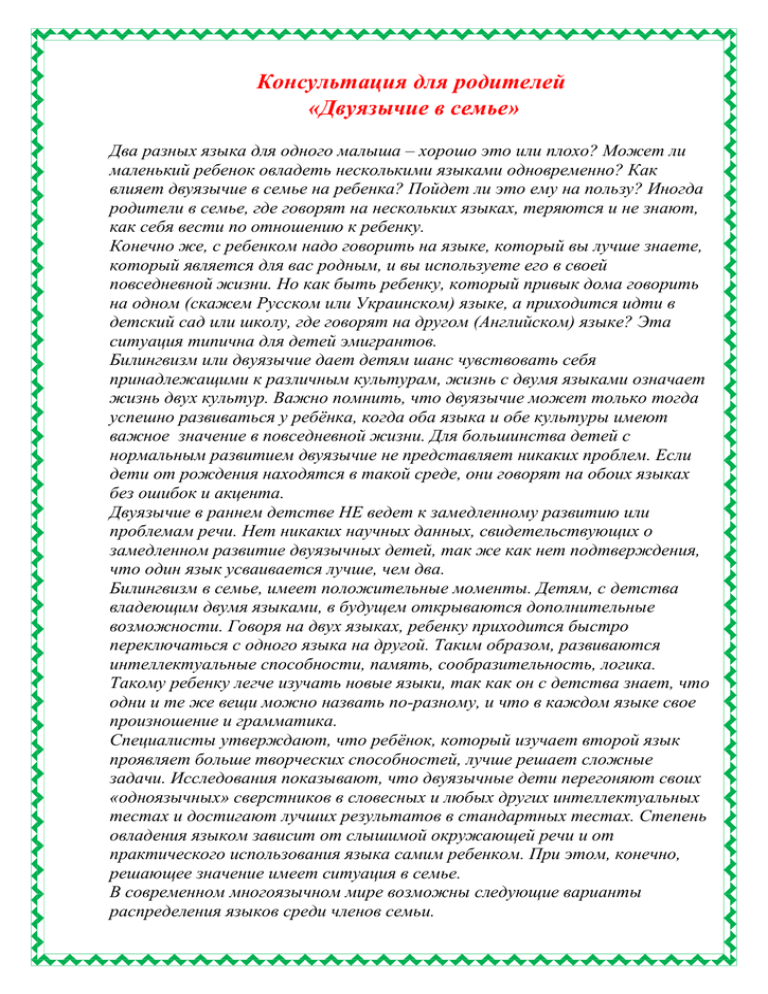 Консультация для родителей "Двуязычие в семье»