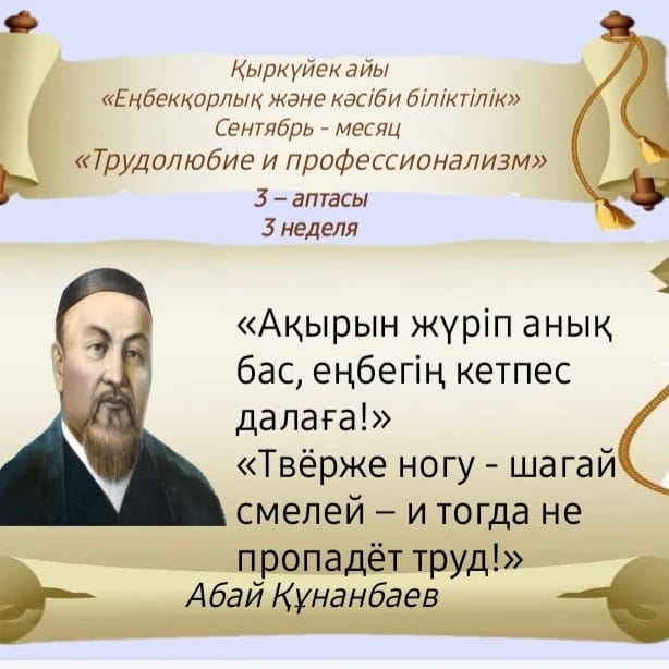«Біртұтас тәрбие»Қыркүйек – еңбекқорлық және кәсіби біліктілік айы Сентябрь 2024 год |