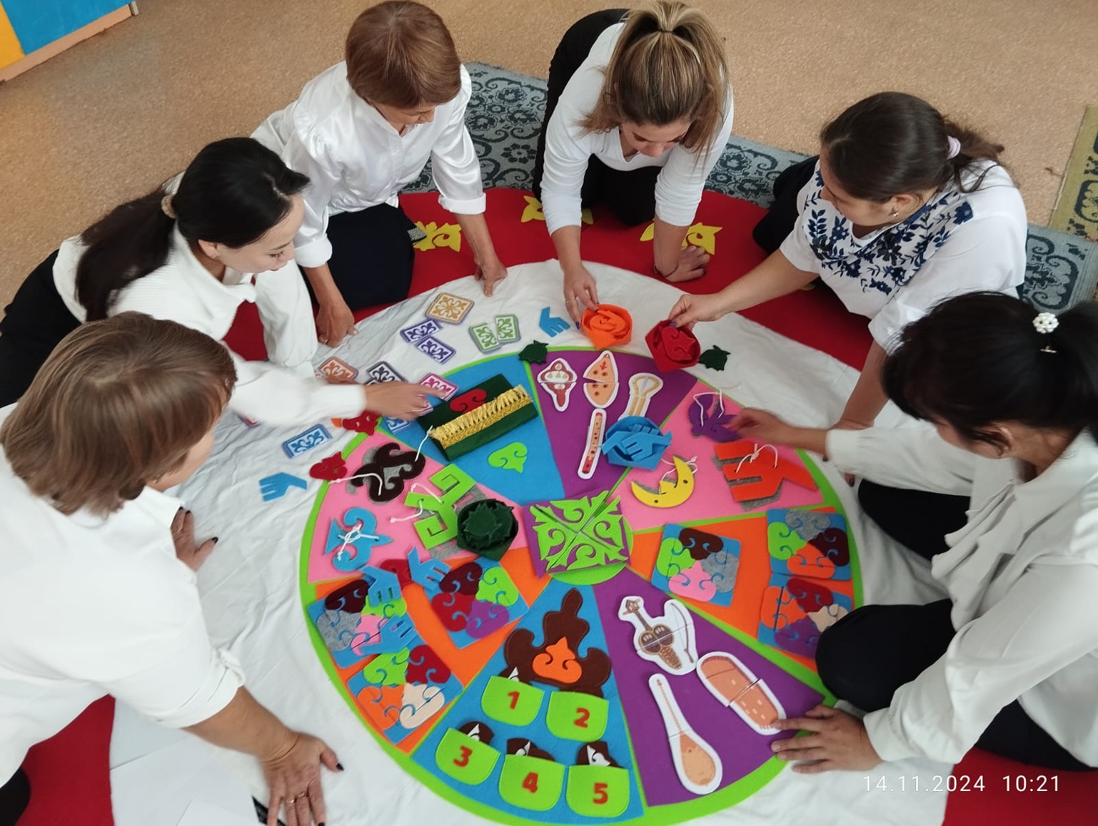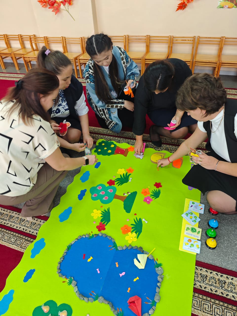 Так же педагогами был проведен тимбилдинг «Баланың сөздік қорын дамыту меңгеру үшін тәрбиешлерге арналған.