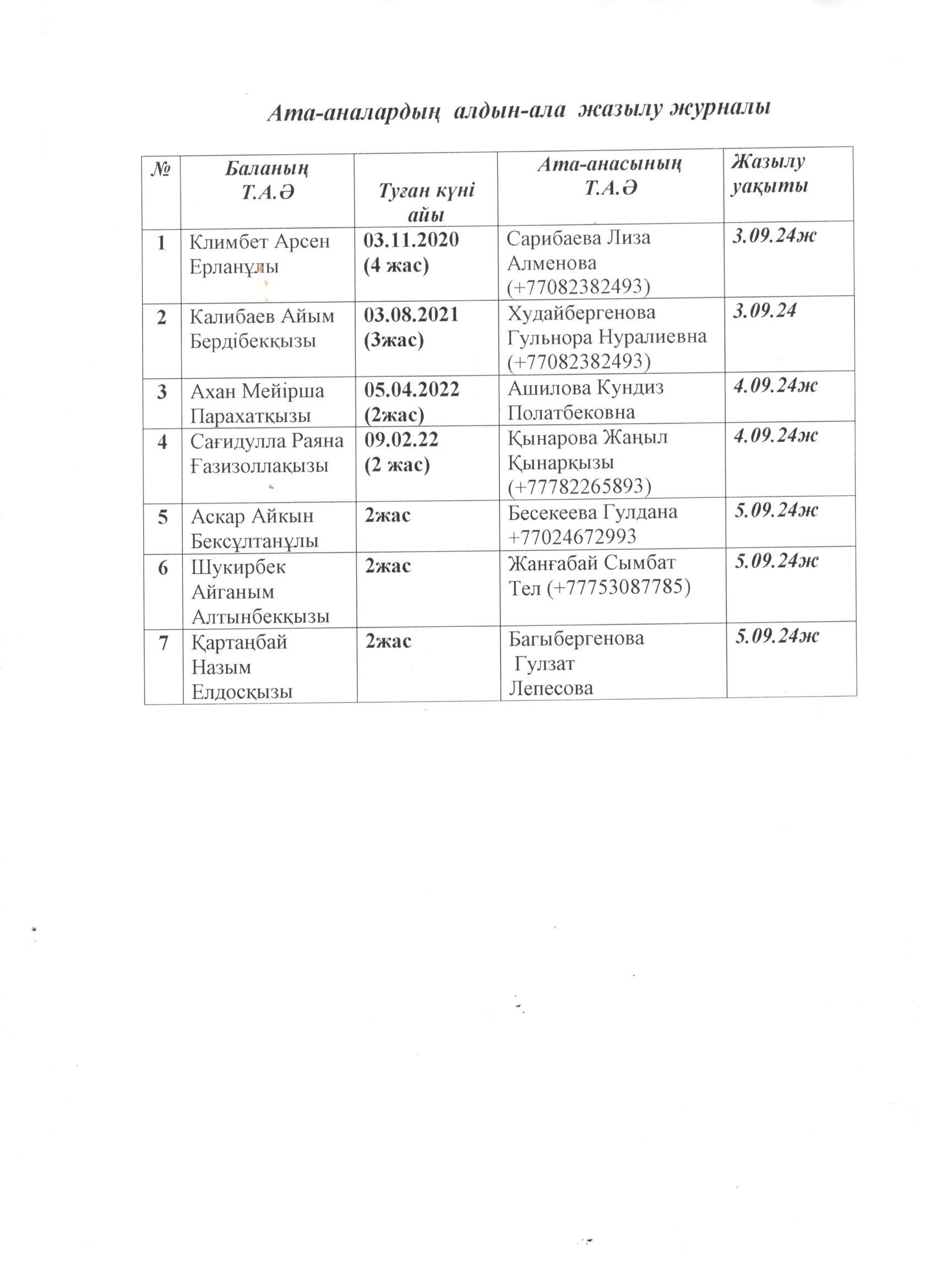 Қыркүйек айыБаламен танысу және бейімдеу жұмыстары жүргізілді. Балалардың жас ерекшеліктеріне сәйкес бастапқы диагностикалау ұйымдастырылды.