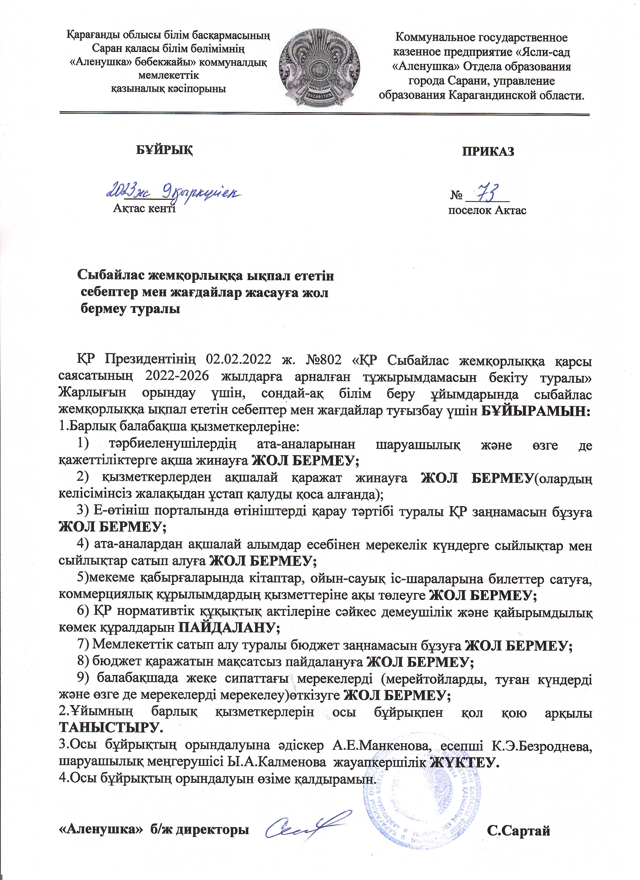 Сыбайлас жемқорлықСыбайлас жемқорлыққа ықпал ететін себептер мен жағдайлар жасауға жол бермеу туралы |